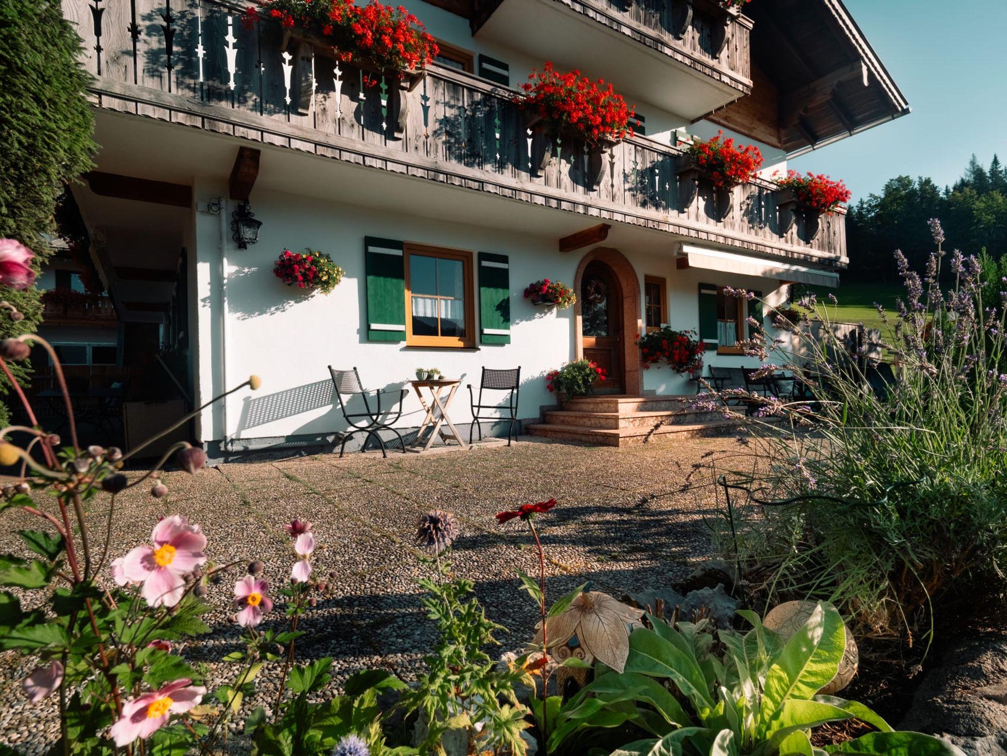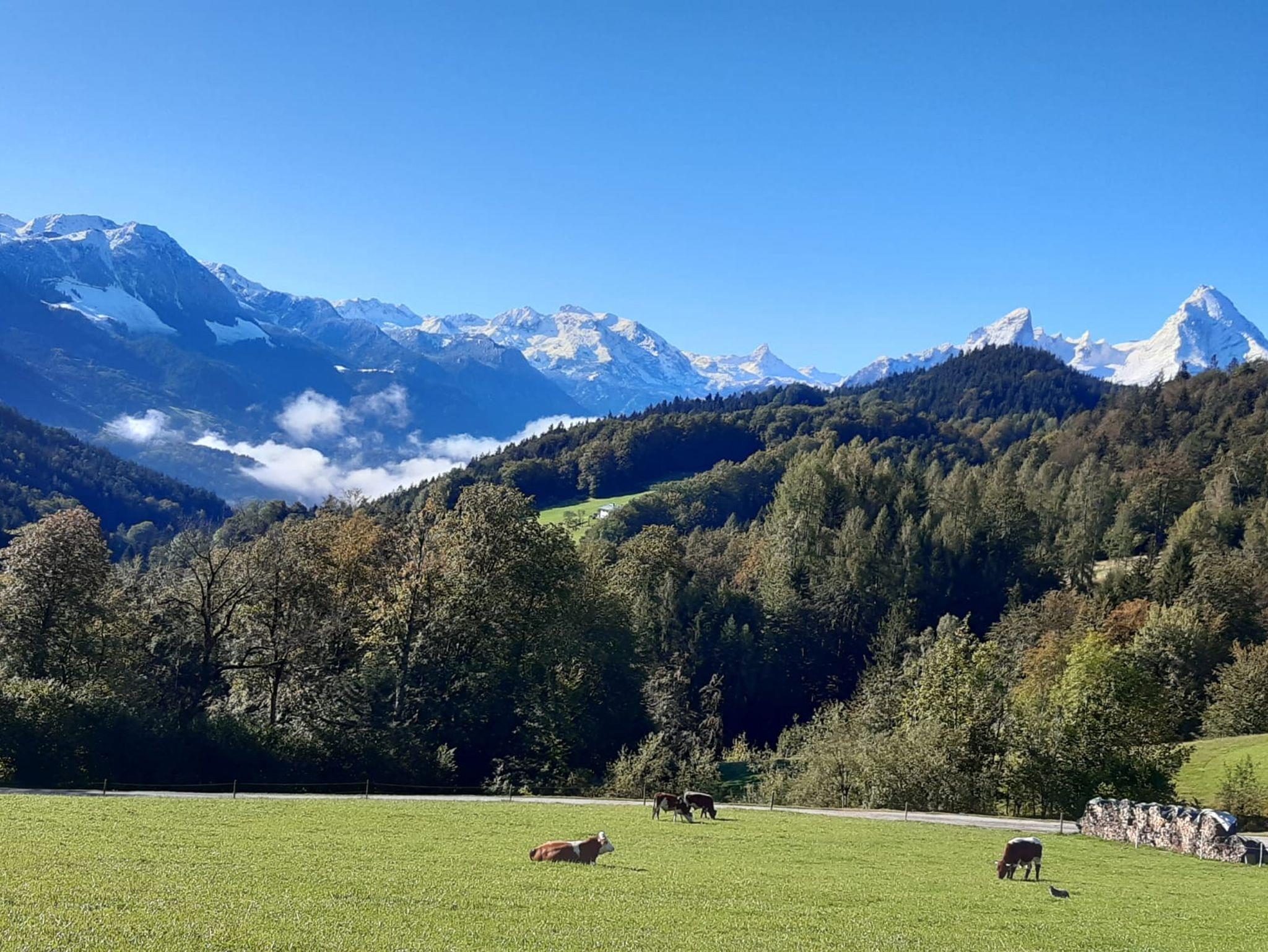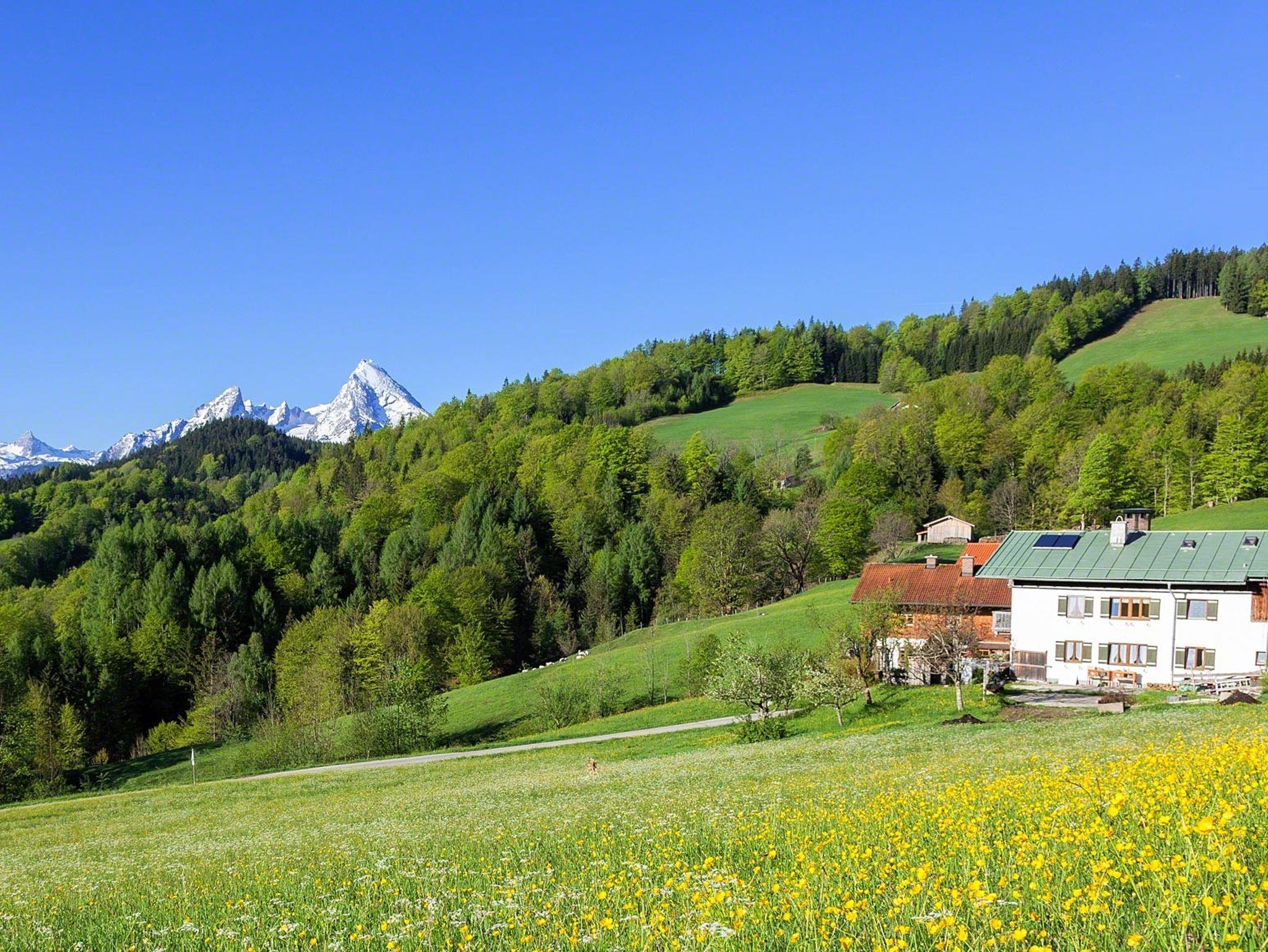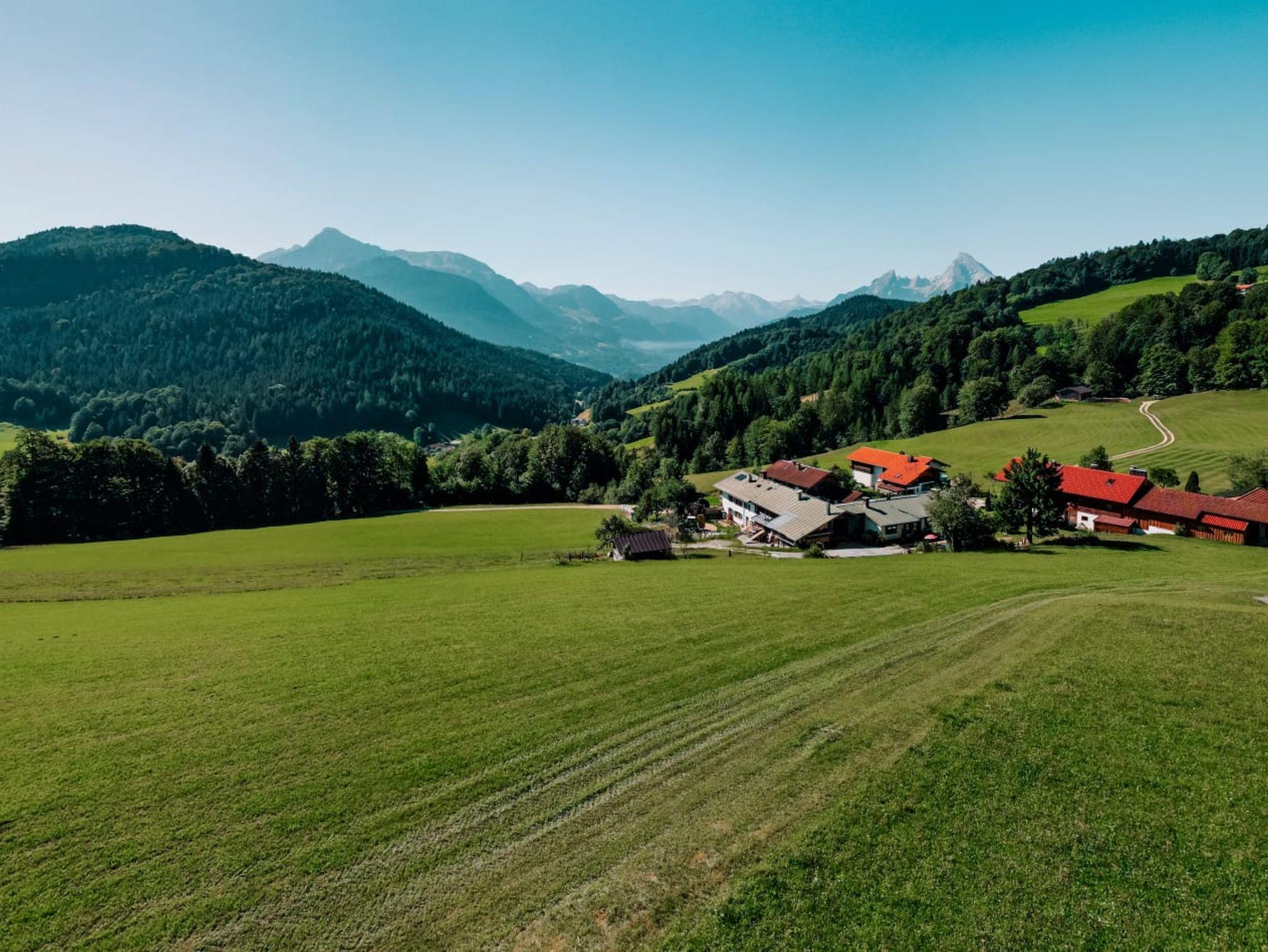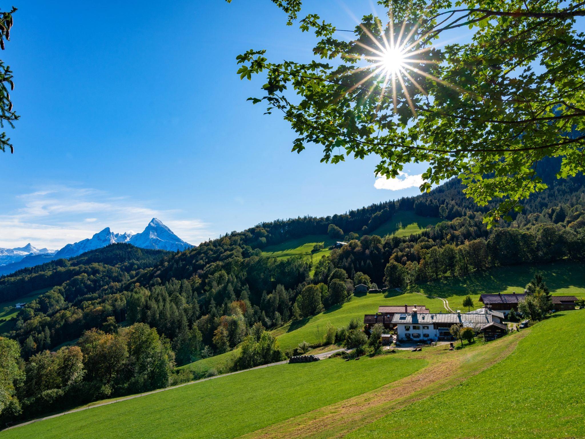 Unser Haus liegt in 900 m Höhe, direkt über Berchtesgaden in ruhiger Südlage am Fuße des sagenumwobenen Untersberg mit tollem Panoramablick vom Watzmann bis zum Kehlstein. Naturliebhaber fühlen sich bei uns besonders wohl, denn Sie können schöne Bergtouren, Klettersteige und Wanderungen direkt von unserem Haus aus starten. Rund um und auf den Untersberg von leicht bis anspruchsvoll. Der Gerer Höhenweg und der Klammweg nach Berchtesgaden sind wundervolle Spaziergänge. Für Familien haben wir einen tollen Spielplatz und unsere Tiere auf dem Hof können Sie gerne füttern und streicheln.Nicht weit vom Haus entfernt sind Lamas auf der Weide und auf Anfrage kann man eine Lamawanderung buchen.Ein kurzer Fußmarsch vom Haus weg ist das gut bürgerliche Gasthaus Dürrlehen hier ist ein schöner Spielplatz und Wanderwege gehen direkt dort vorbei.Im Sommer lädt in Bischofswiesen das Naturbad Aschauerweiher ein, dort startet auch der Märchenpfad durch den Wald. Im Winter ist dort die Langlaufloipe. Das Salzbergwerk oder das Haus der Berge in Berchtesgaden kann man auch bei schlechtem Wetter besuchen.Viele bekannten Ausflugsziele wie Königssee und Kehlstein sind zwischen 4 und 9 km zu erreichen.