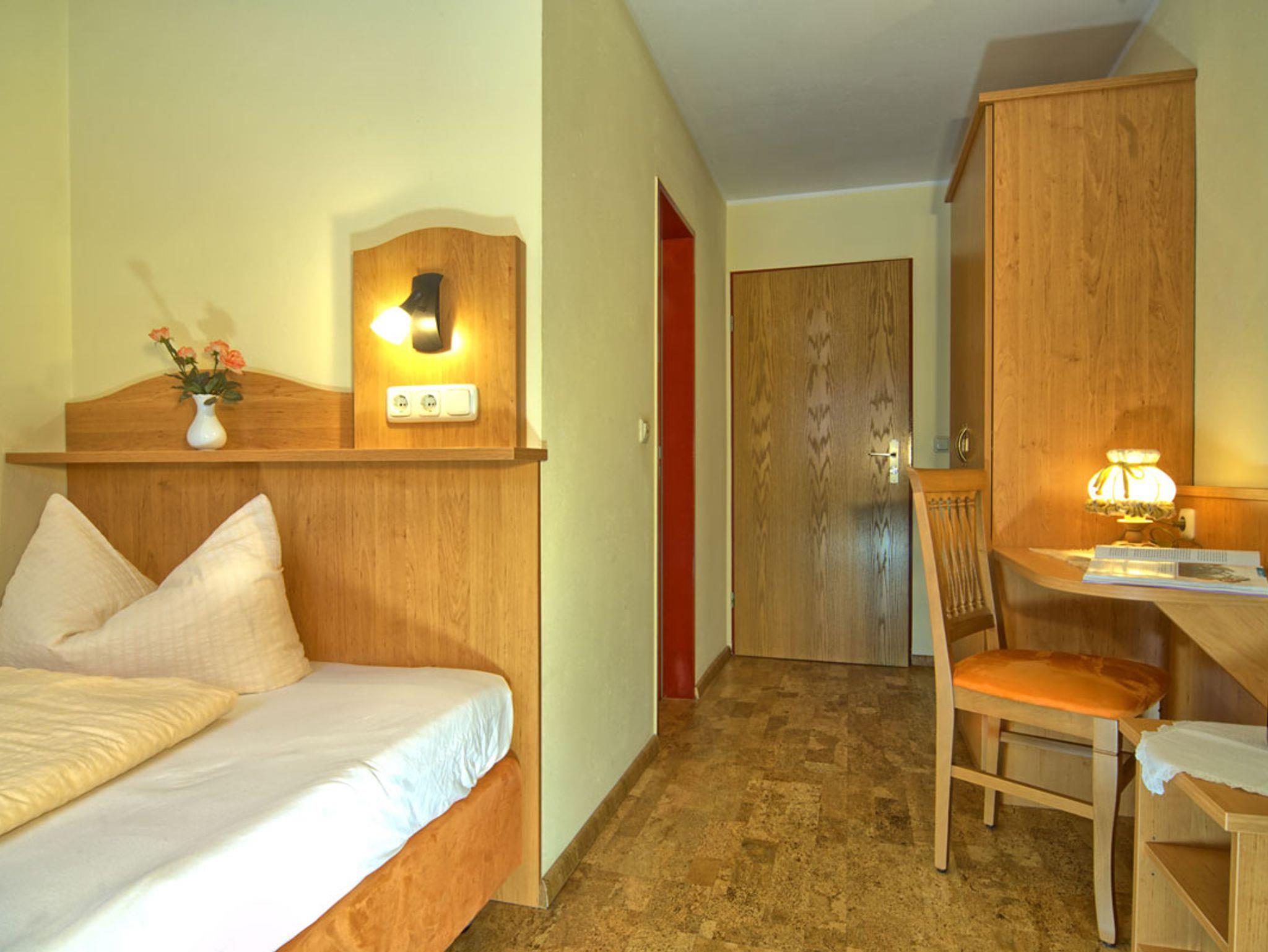 Die Einzelzimmer sind rauchfrei und haben Laminatboden. Die Zimmer haben einen überdachten Freisitz (Terrasse) vor dem Fenster und Bergblick, Sonne bis in den Nachmittag. Beide Zimmer Parterre! - Neu renoviert - Mit Boxspringbetten - Schreibtisch - Kabel TV, Flachbild - Radiowecker - Verdunkelungsvorhänge - Bäder mit Dusche/WC