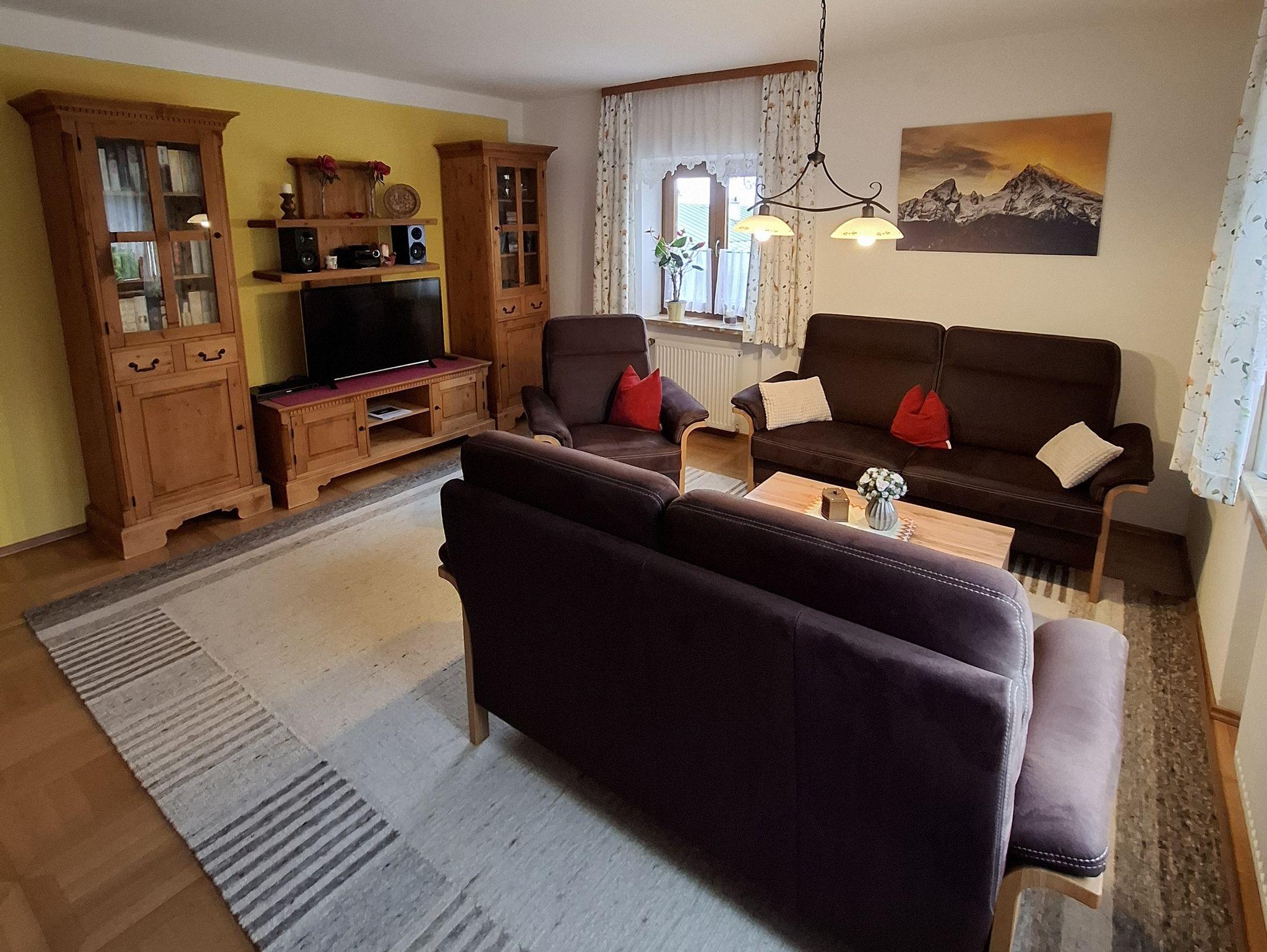 Die großzügig ausgestattete Ferienwohnung liegt im Erdgeschoß des Hauses. Der Wohnraum kann nach Bedarf zwischen 77qm und 100qm variieren. Den Gästen steht der Garten mit Liegewiese, Sitzgruppen, Pavillon und Grillmöglichkeit zur Verfügung. Das Zentrum liegt ca. 4km entfernt. In unmittelbarer Nähe befindet sich Deutschlands höchstgelegener Golfplatz sowie eine Sommerrodelbahn. Vor der Haustüre können Wanderer und Mountainbiker ihren Ausflug beginnen. Auch im Winter können Sie bei uns einen gelungenen Urlaub verbringen. Die Skigebiete Roßfeld und Familienskigebiet Obersalzberg befinden sich in unmittelbarer Nähe. Die Scharitzkehlalm bietet Langläufern ideale Loipen. Die Rodelbahn vom Obersalzberg nach Berchtesgaden ist in wenigen Minuten erreichbar. Aber auch das Wegenetz am Obersalzberg wird im Winter gut geräumt. Am Abend erwartet Sie die wärmende Infrarotkabine mit Saunaofen.