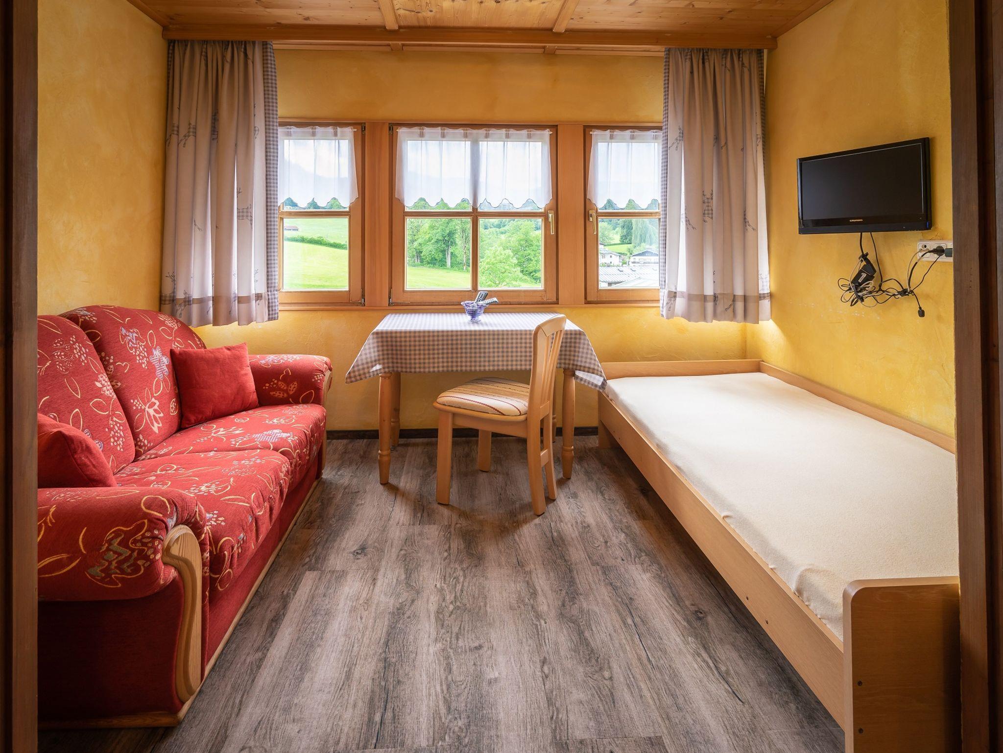 Unser komfortabel eingerichtetes Dreibettzimmer mit 2 separaten Schlafzimmern verfügt über ein Doppelbett und ein Einzelbett im zweiten Raum. Einen Flachbildfernseher, einen Radiowecker, einer Sitzgelegenheit und ein Badezimmer mit Dusche und WC. Das Dreibettzimmer liegt im 2. Stock.Für einen guten Start in den Tag bieten wir Ihnen morgens ein reichhaltiges Frühstücksbuffet an.
