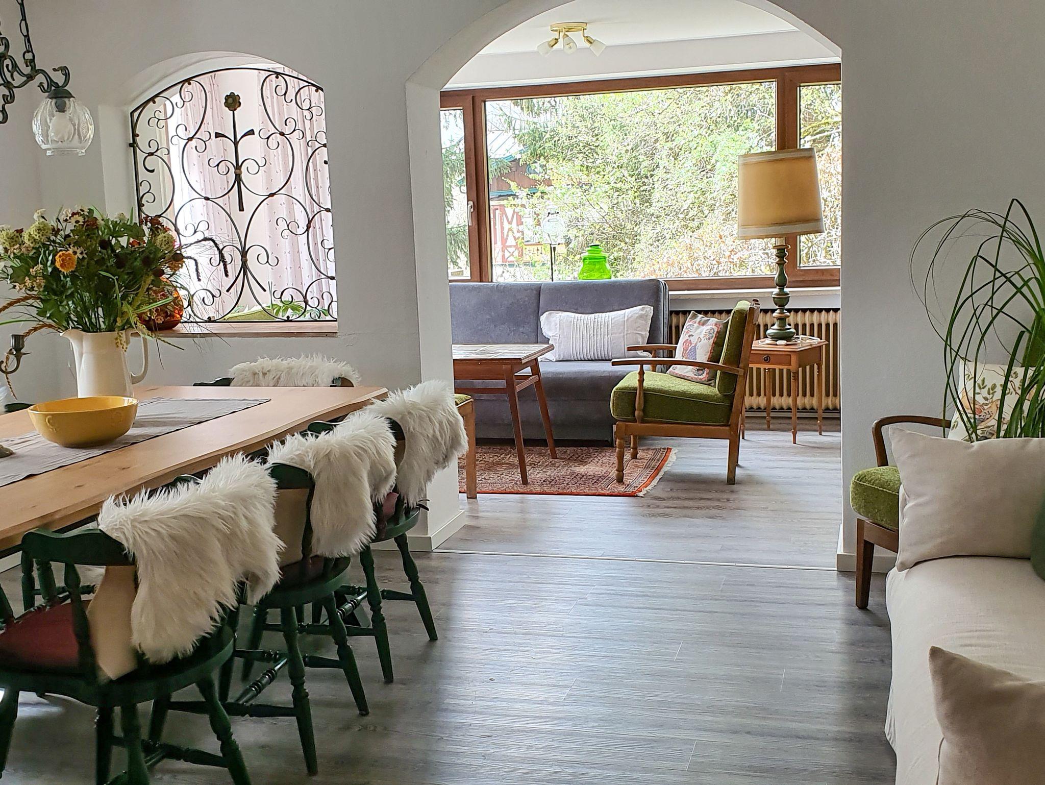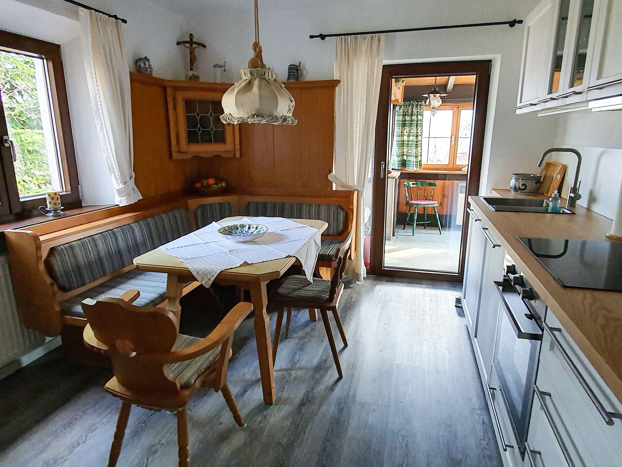 Sie erwartet eine gemütlich, im Landhausstil eingerichtete Wohnung mit allem Komfort, wie z.B. der Spülmaschine in der Küche. Durch den großen Esstisch im Wohnzimmer und der großen Terrasse, ist das Haus in Verbindung mit der Wohnung Watzmann für große Familien geeignet.