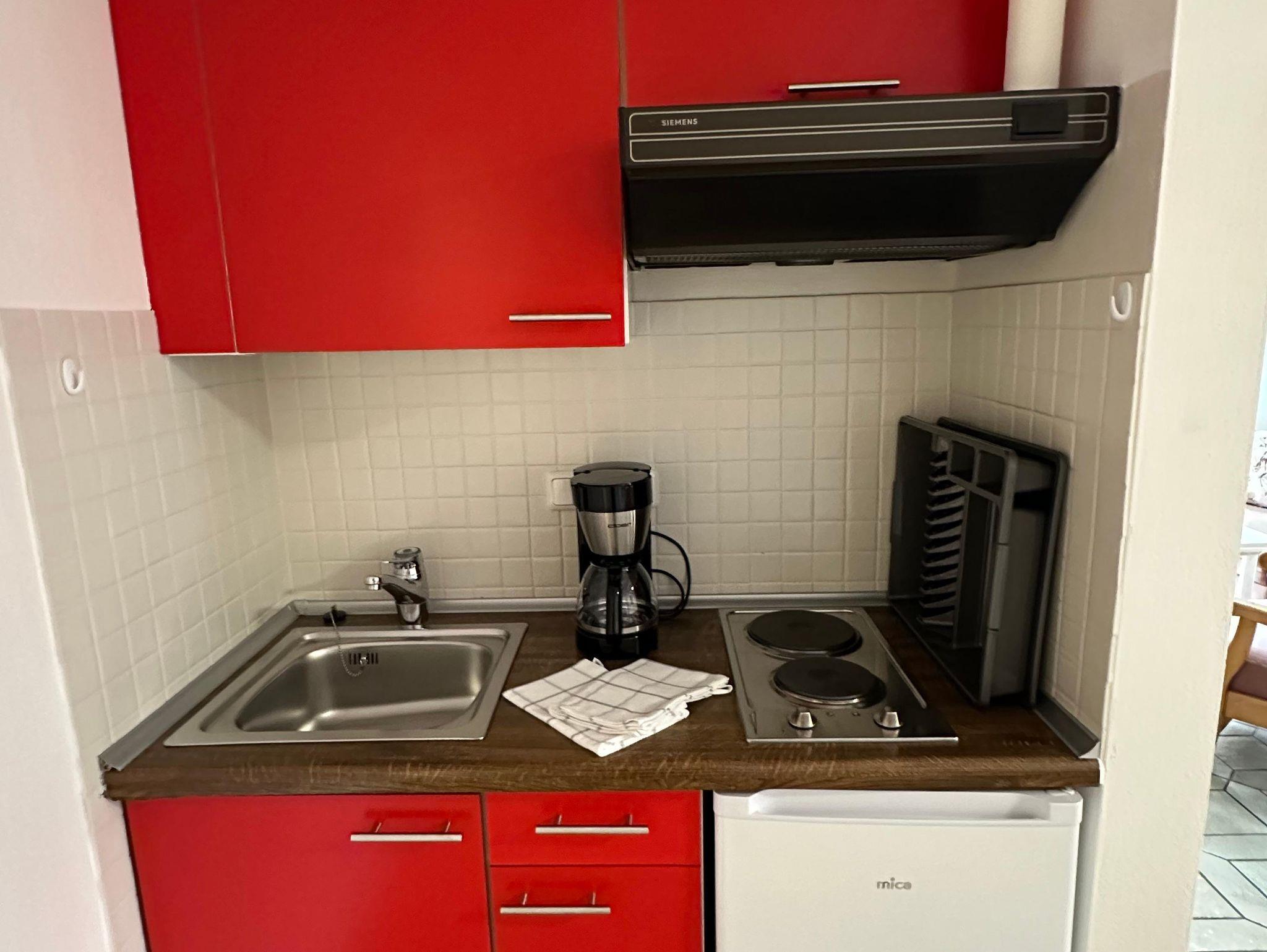 und großzügigem Kleiderschrank. Die Küchenzeile ist vollständig ausgestattet mit Doppelherdplatte,