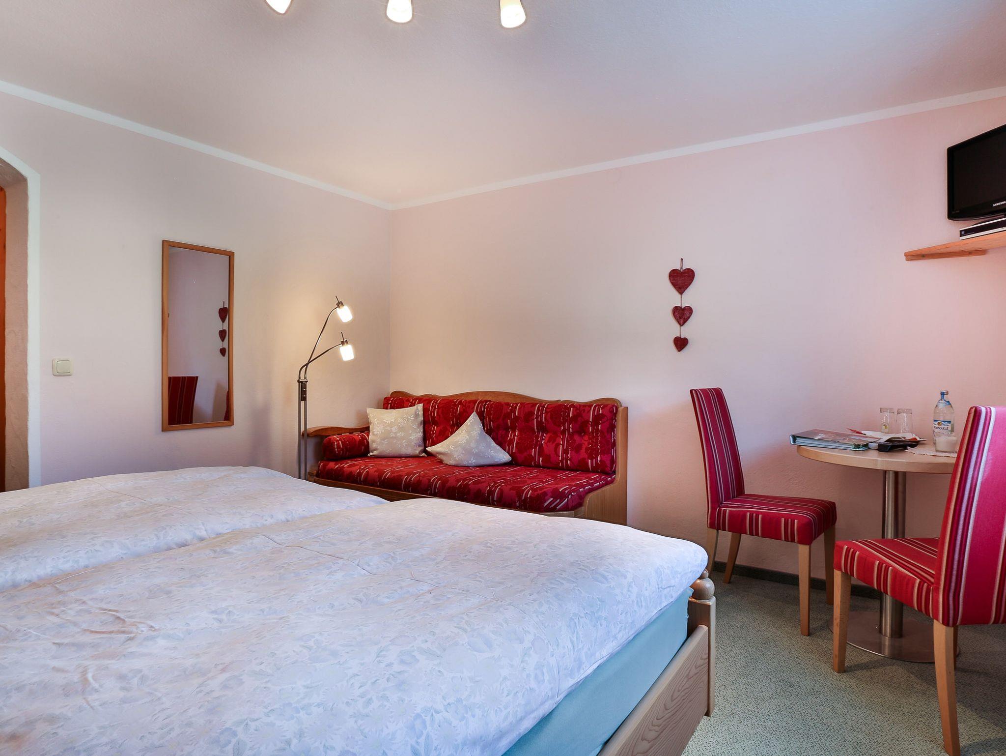 Das gemütliche Doppelzimmer Alpenveilchen hat eine Größe von 22 qm und befindet sich im Erdgeschoss. Das Zimmer ist ausgestattet mit: Sitzgruppe, SAT-Flach-TV und einem DVD-Player. Das WLAN stellen wir unseren Gästen kostenlos zur Verfügung. Das Zimmer ist besonders geeignet für Menschen die keine Treppen steigen möchten oder können.