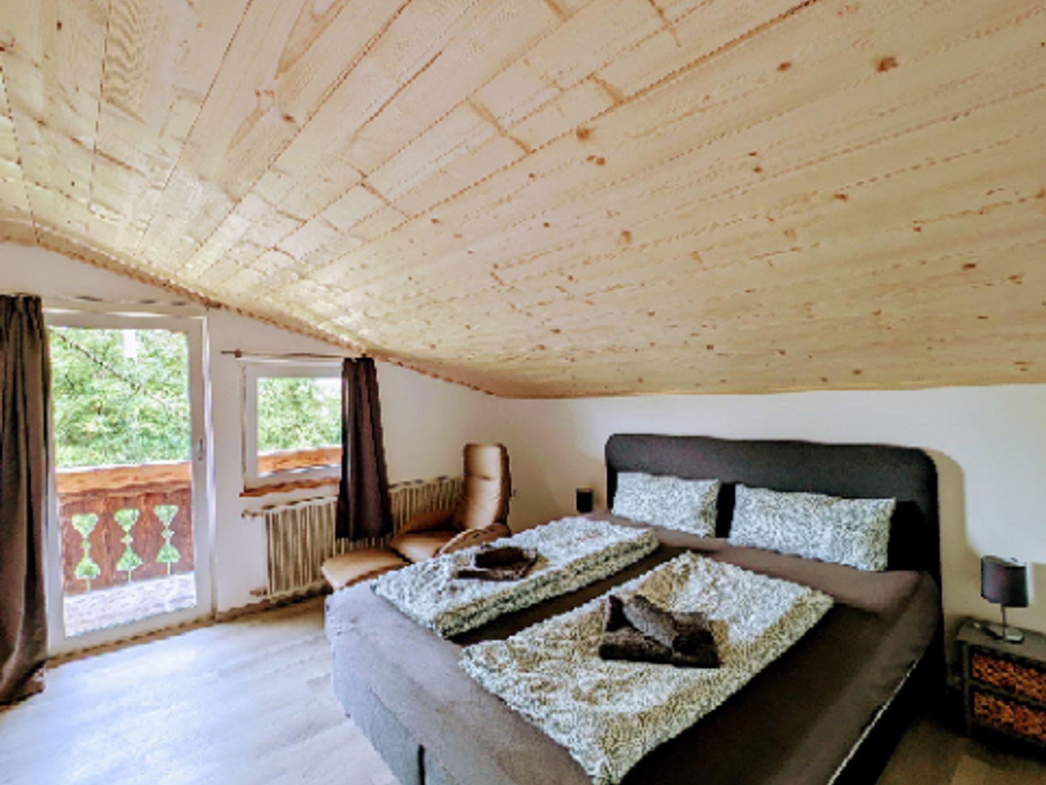 Die Wohnung verfügt über zwei Schlafzimmer, die jeweils mit einem komfortablen Doppelbett ausgestattet sind. Beide Schlafzimmer sind geschmackvoll eingerichtet und bieten einen ruhigen Rückzugsort. Von den Schlafzimmern aus haben Sie Zugang zu einem großen Balkon, auf dem Sie die Bergsicht in vollen Zügen genießen können.