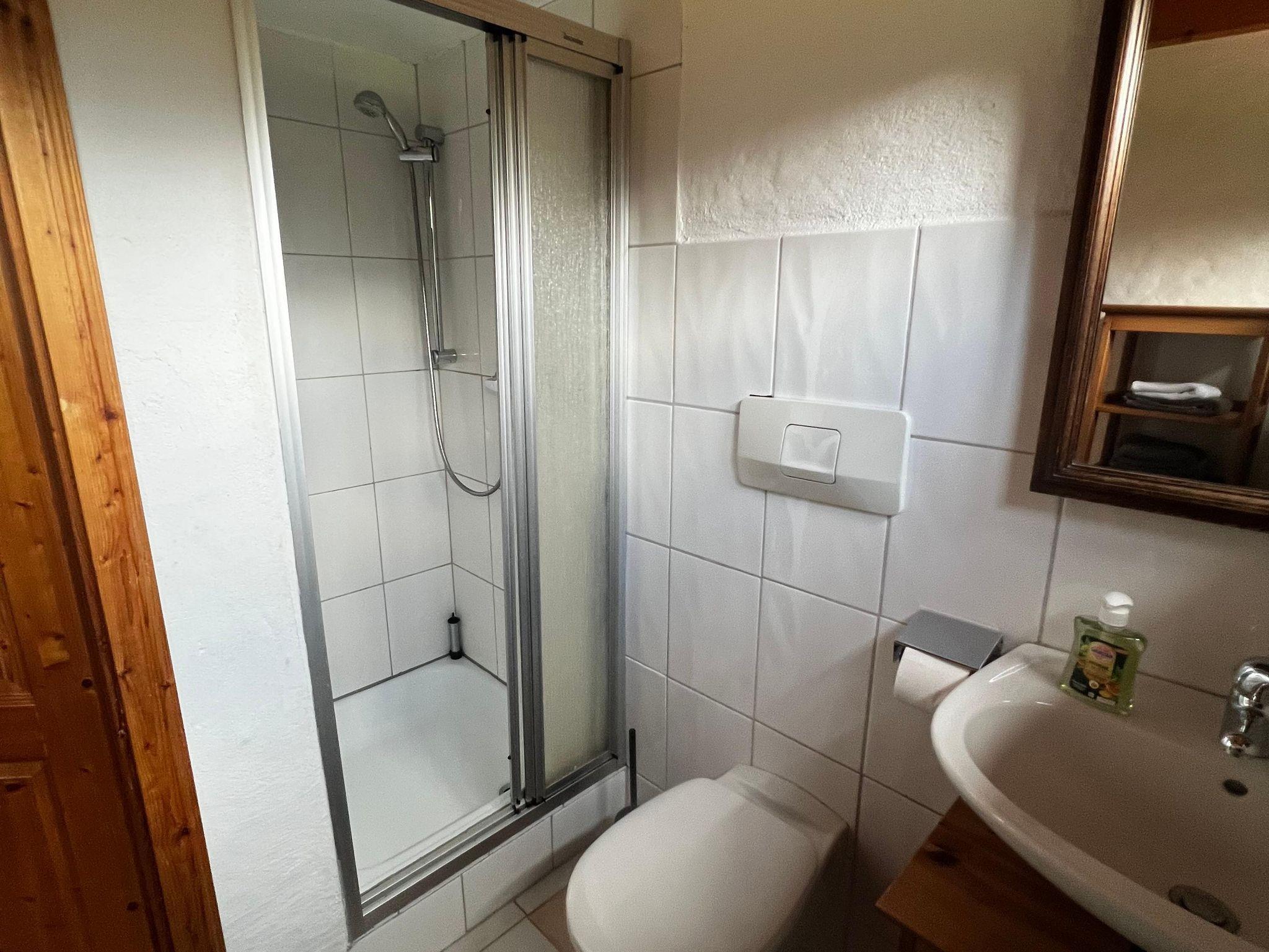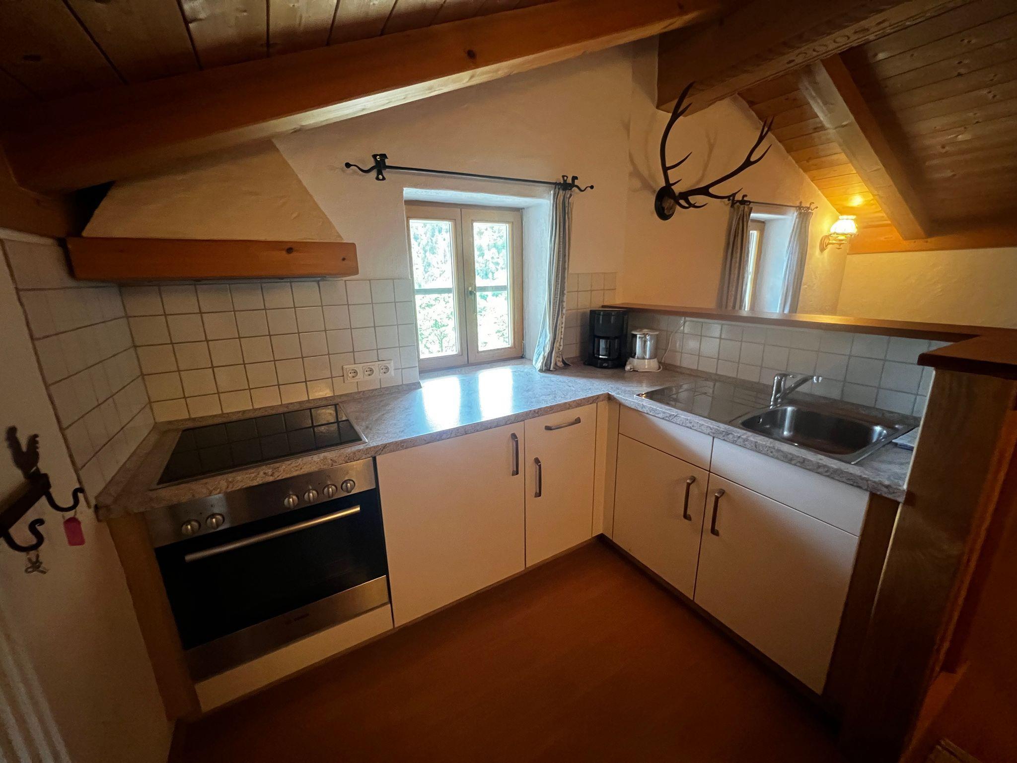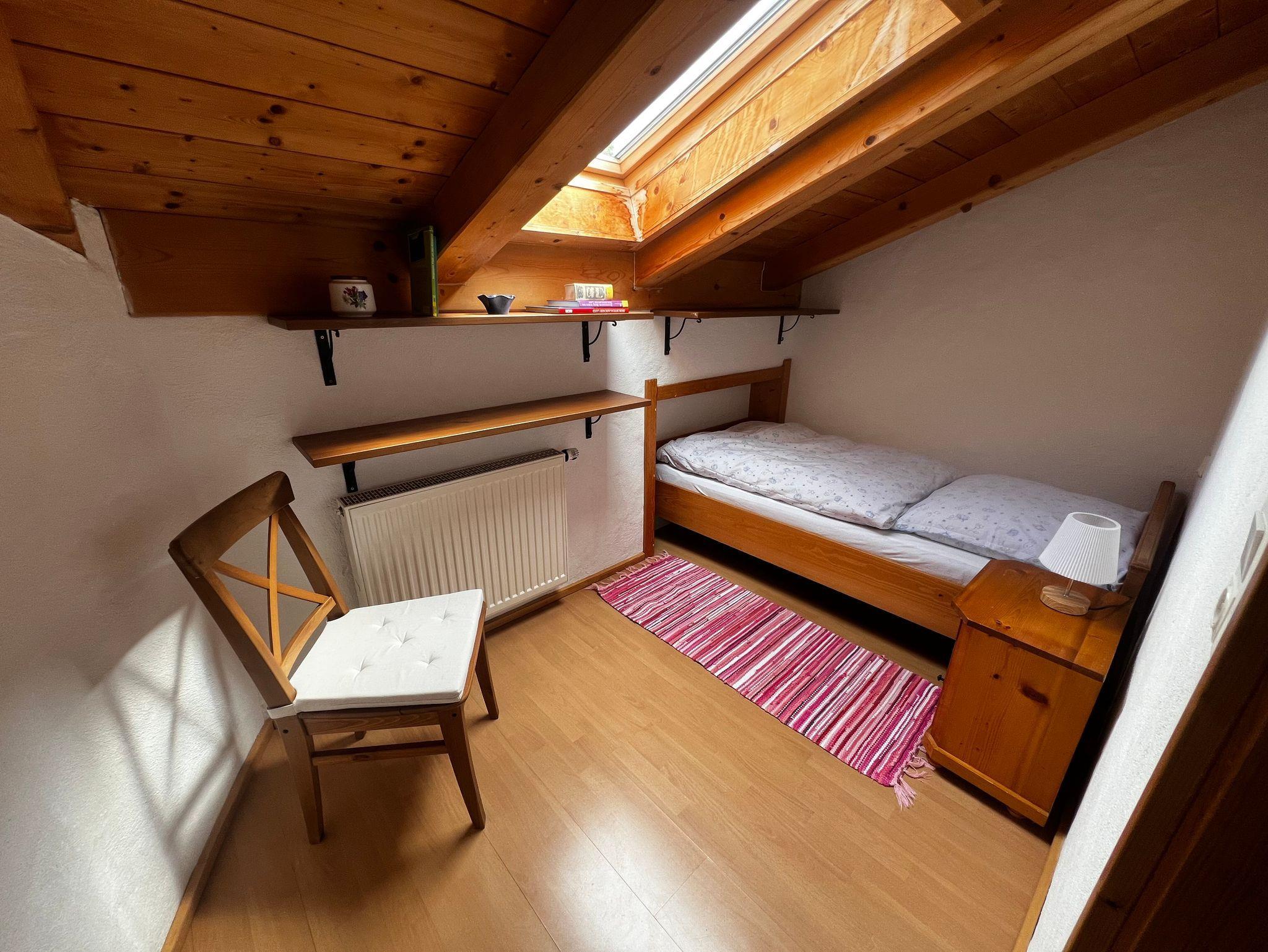Die Ferienwohnung Watzmann bietet Platz für max. 3 Personen. Die Wohnung befindet sich im zweiten Stock unseres Hauses. Da zu dieser Ferienwohnung eine etwas steile Zugangstreppe führt, ist sie eher für jüngere Gäste geeignet. Sie besteht aus einer großen Wohnküche, einem Schlafzimmer mit Doppelbett, einem Zimmer mit Einzelbett und einem Bad (inkl. WC und Dusche).