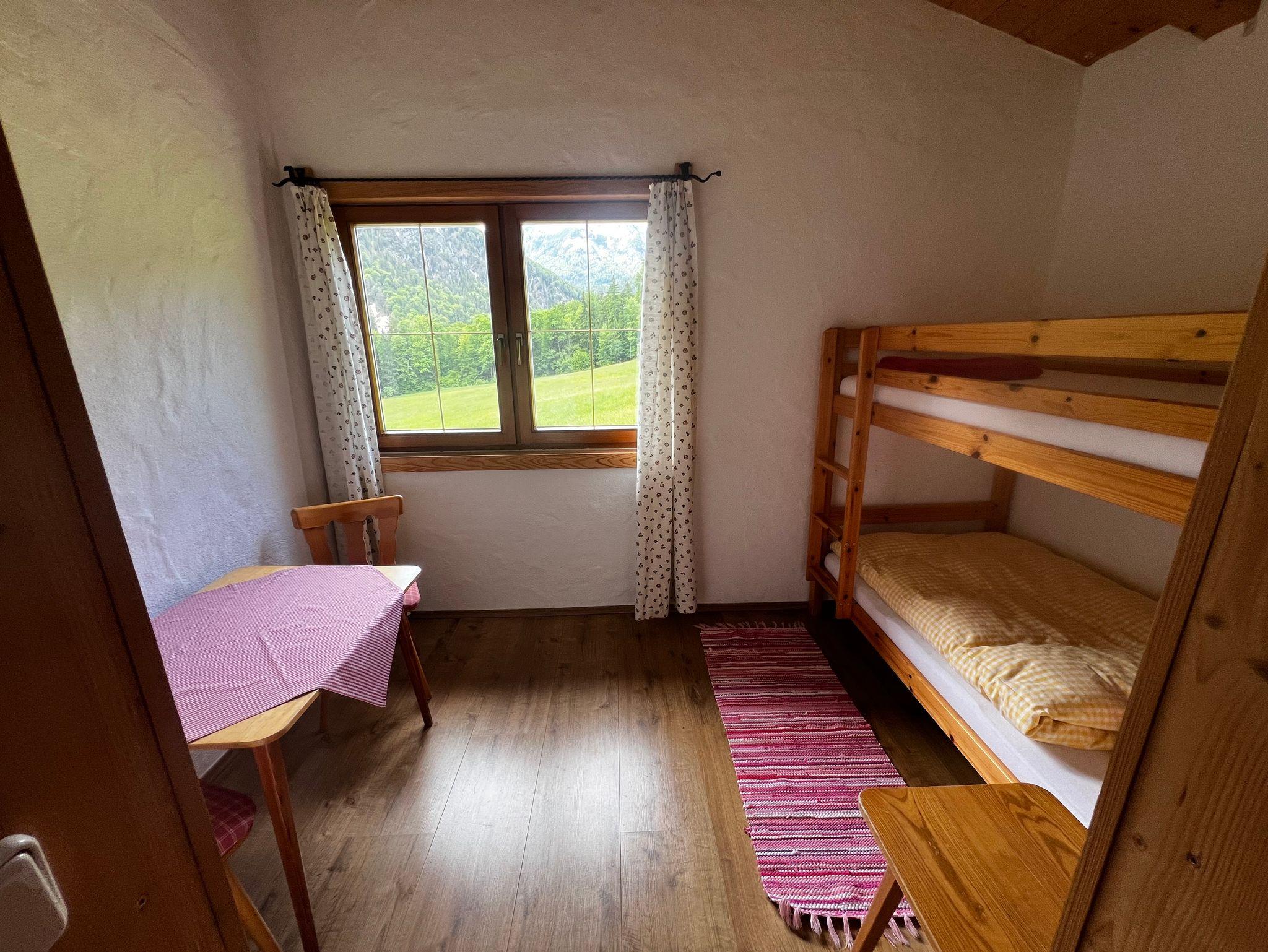 Die Ferienwohnung Hoher Göll ist ca. 50 m2 groß und bietet Platz für max. 4 Personen (1 Doppelbett, 1 Stockbett). Die Wohnung befindet sich im ersten Stock unseres Hauses. Sie besteht aus einer großen Wohnküche, einem Schlafzimmer mit Doppelbett, einem Zimmer mit Stockbett und einem Bad (inkl. WC und Dusche).