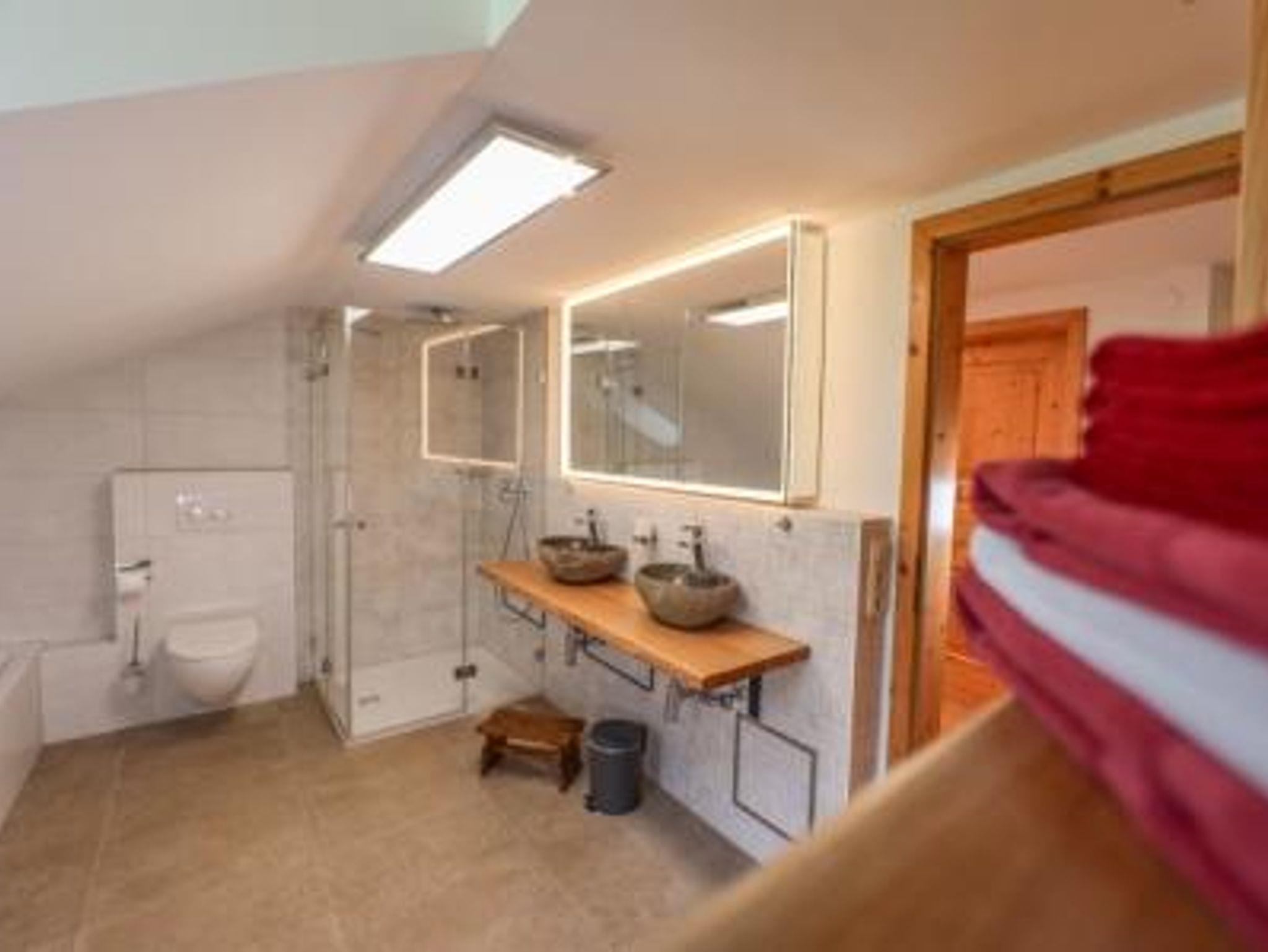 Die Ferienwohnung Salzwand im ruhigen Dachgeschoss bietet auf 90qm genügend Raum für vier Personen. Diese, mit fünf Sternen klassifizierte Wohnung verfügt über zwei separate Schlafzimmer mit Doppelbetten, ein großes helles Badezimmer mit Wanne und separater Dusche. Ein zusätzliches WC findet sich ebenfalls in der Ferienwohnung Salzwand. Weiters steht eine komplett eingerichtete Küche mit gemütlicher Essecke, sowie ein gemütliches Wohnzimmer mit Fernseher und Stereoanlage zur Verfügung. Das Wohnzimmer und auch eines der Schlafzimmer haben einen direkten Zugang zum Panoramabalkon, auf dem man die Morgensonne genießen kann.