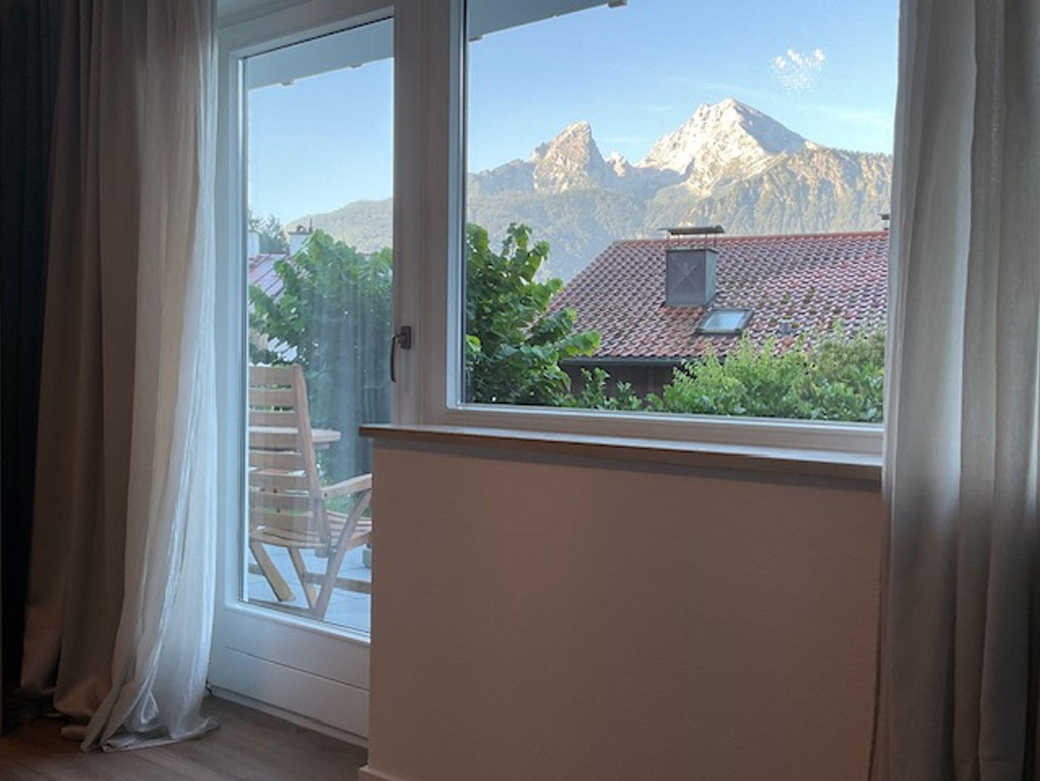 Beim Aufwachen aus einem modernen Boxspringbett können sie den Watzmannblick genießen.
