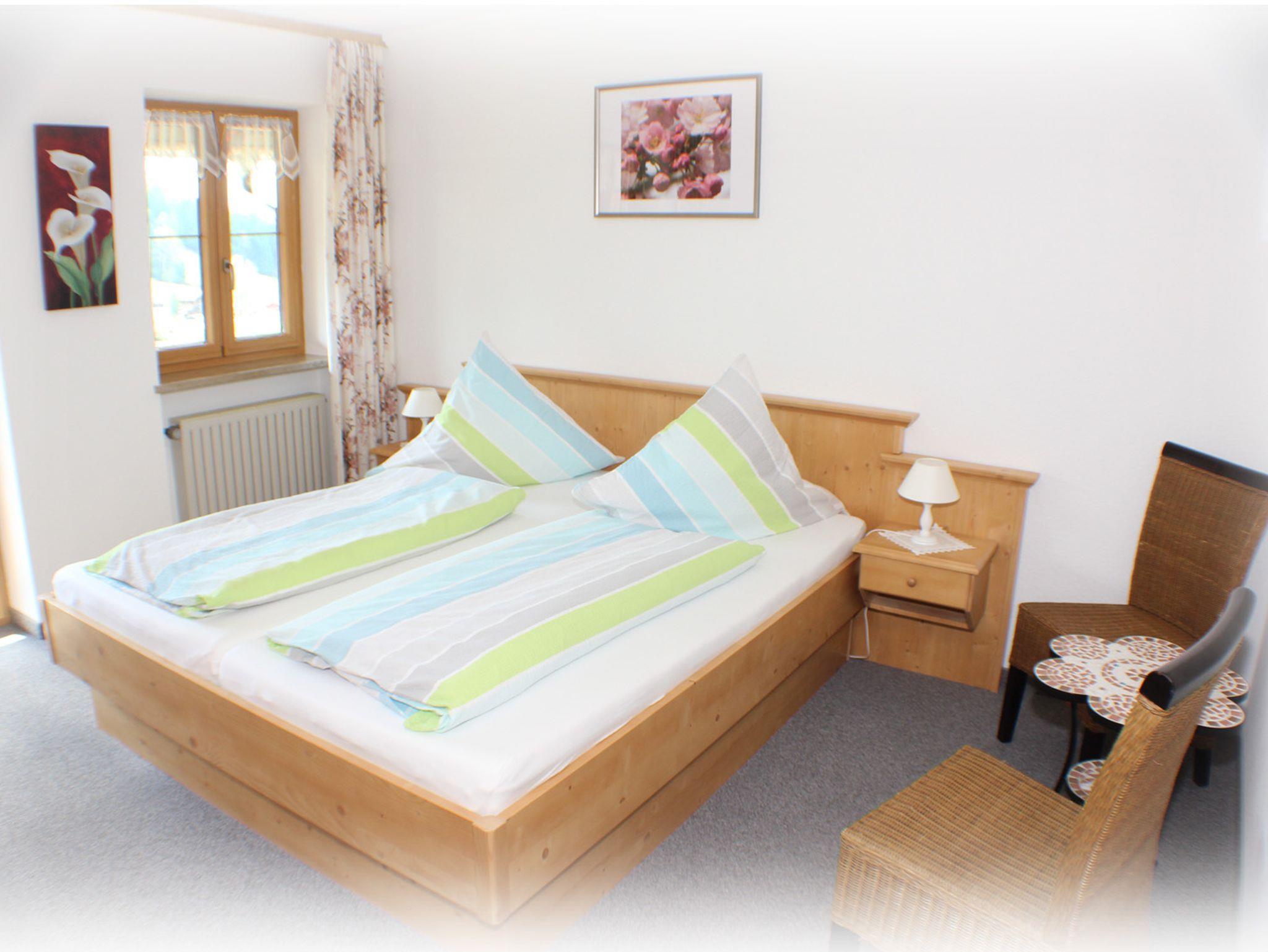 Unsere Ferienwohnung mit 2 getrennten Schlafzimmern befindet sich im 1. Stock. Sie bietet Platz für 4 Erwachsene und eventuell 1 Kleinkind (Reisebett und Hochstuhl stehen Ihnen zur Verfügung). In den beiden großen Schlafzimmern sind jeweils 1 großes Doppelbett, 1 Kleiderschrank und eine Sitzgelegenheit. Die Küchenzeile in der Wohnküche ist komplett ausgestattet. Genießen sie auf dem großen Balkon einen einmaligem Blick auf den Watzmann, Schönfeldspitze und die Funtenseetauern Unser neu eingerichtetes Bad hat eine große Dusche (mit Regendusche) und ein großes Waschbecken, das WC ist extra. SAT-TV und W-Lan sind vorhanden.