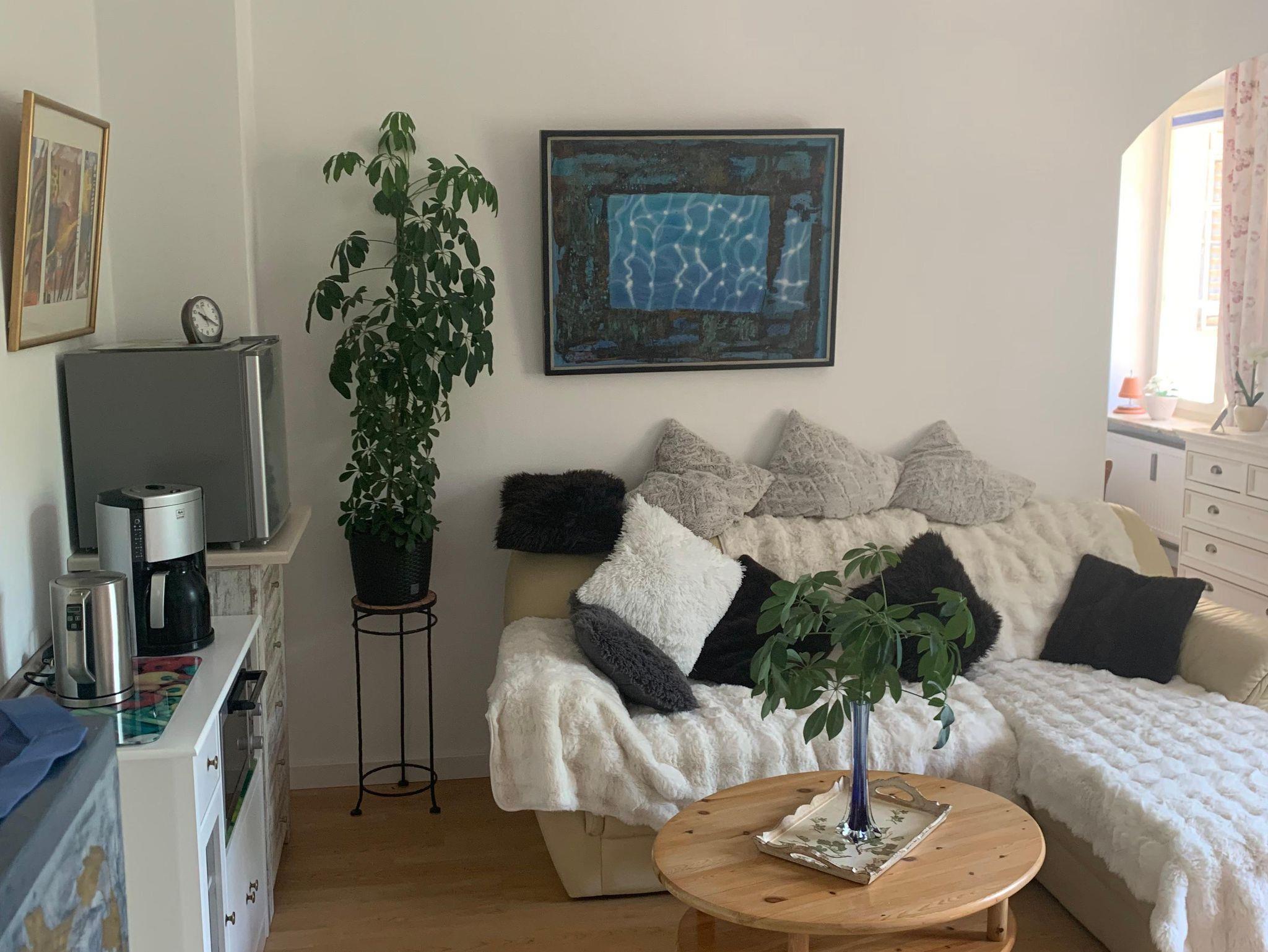 Die Wohnung befindet sich im 2. Stock mit Blick auf das eindrucksvolle Bergpanorama. Hohe stilvoll bemalte Decken verleihen den Räumlichkeiten ein fürstliches Ambiente. Das geschmackvoll eingerichtete Einraumapartment verfügt über ein bequemes Boxspringbett, ausreichend Schränke für Kleidung, keine Küchenzeile sondern eine voll eingerichtete Kaffee-Ecke mit Wasserkocher, kl. Backofen, kl. Kühlschrank und diversen Elektrogeräten. Es besteht die Möglichkeit sich ein Frühstück herzurichten und am Esstisch oder am Couchtisch einzunehmen. Das schmutzige Geschirr waschen wir für Sie ab. Weiterhin gibt es ein Badezimmer, Badewanne mit Regendusche (inkl. Duschvorhang), Waschbecken und WC in der Wohnung. Ein Föhn, Schminkspiegel, ausreichend Hand- und Badetücher sind vorhanden. Technik: CD-Player, DVD-Player, Flachbild-TV, Kabel-TV, Radio, freies WLan.