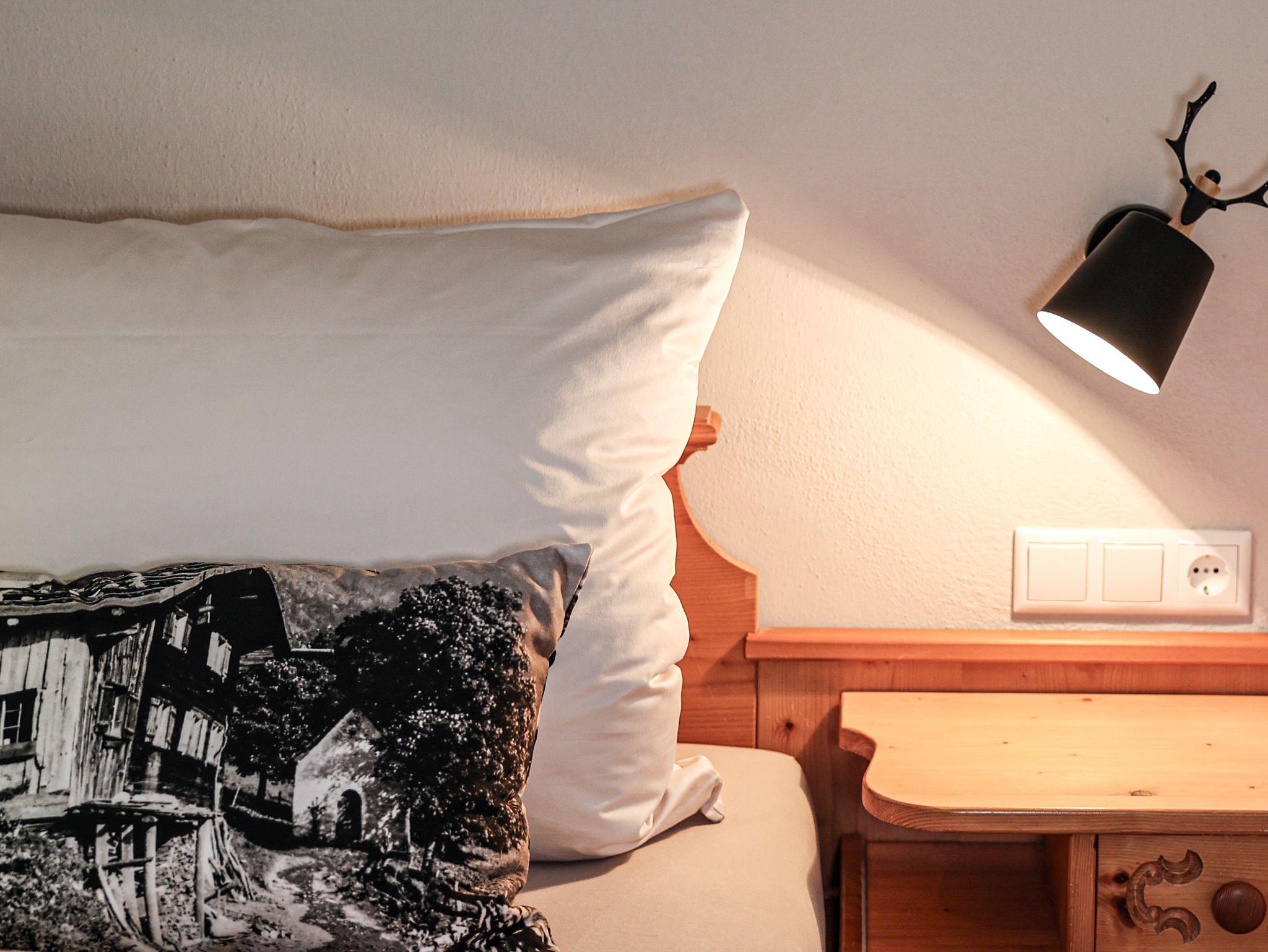 Nachttischlampe und Beleuchtung ist vom Bett aus schaltbar. Steckdosen neben dem Bett vorhanden.