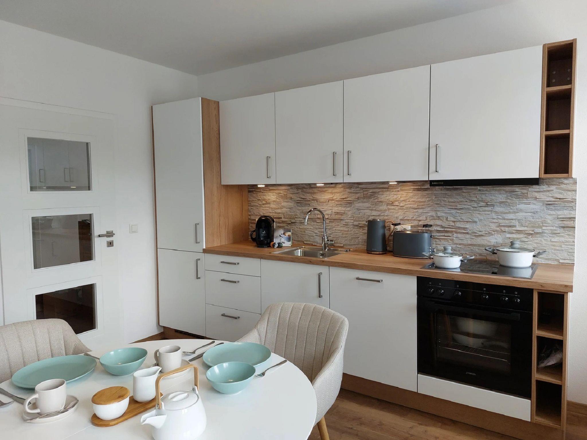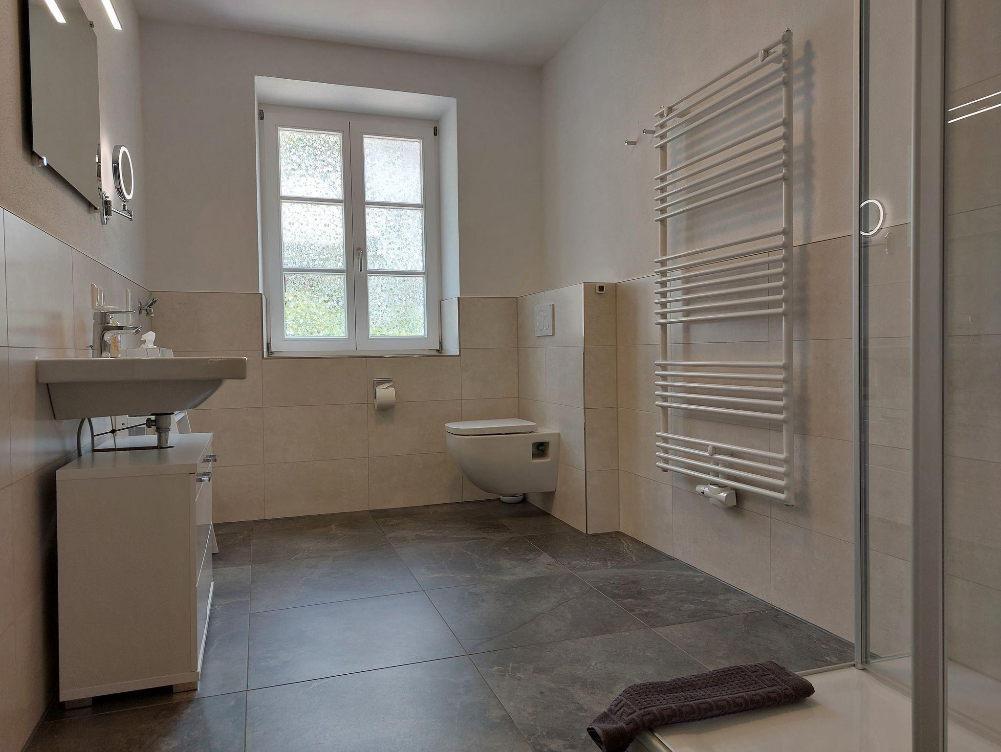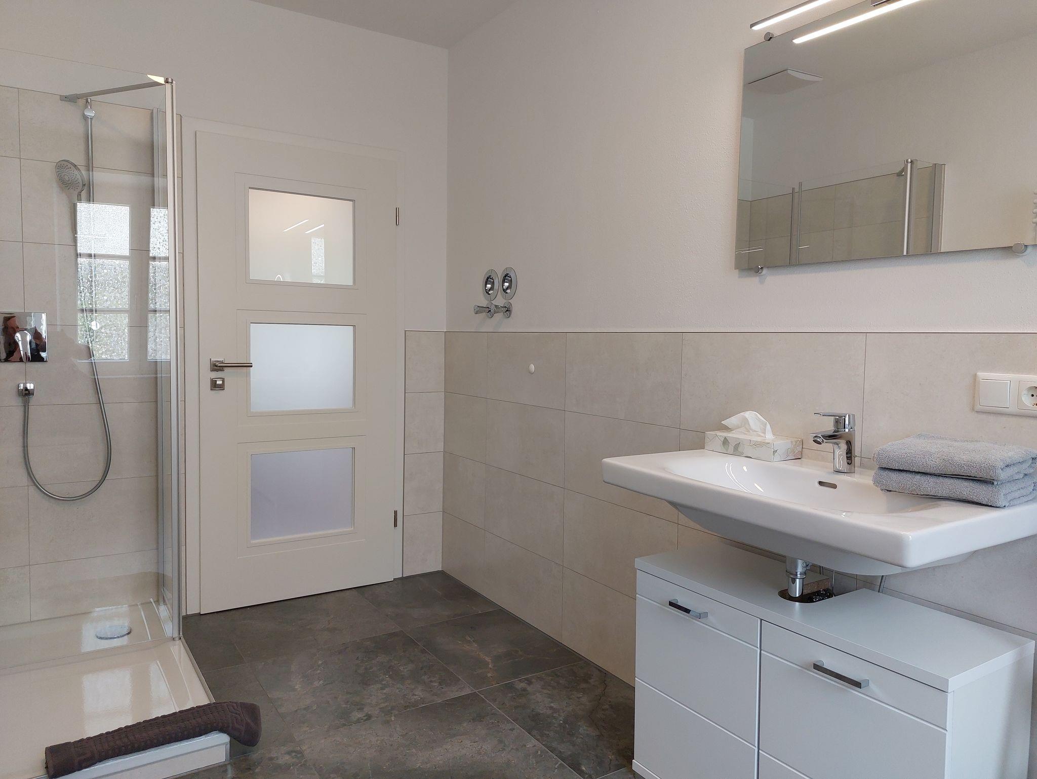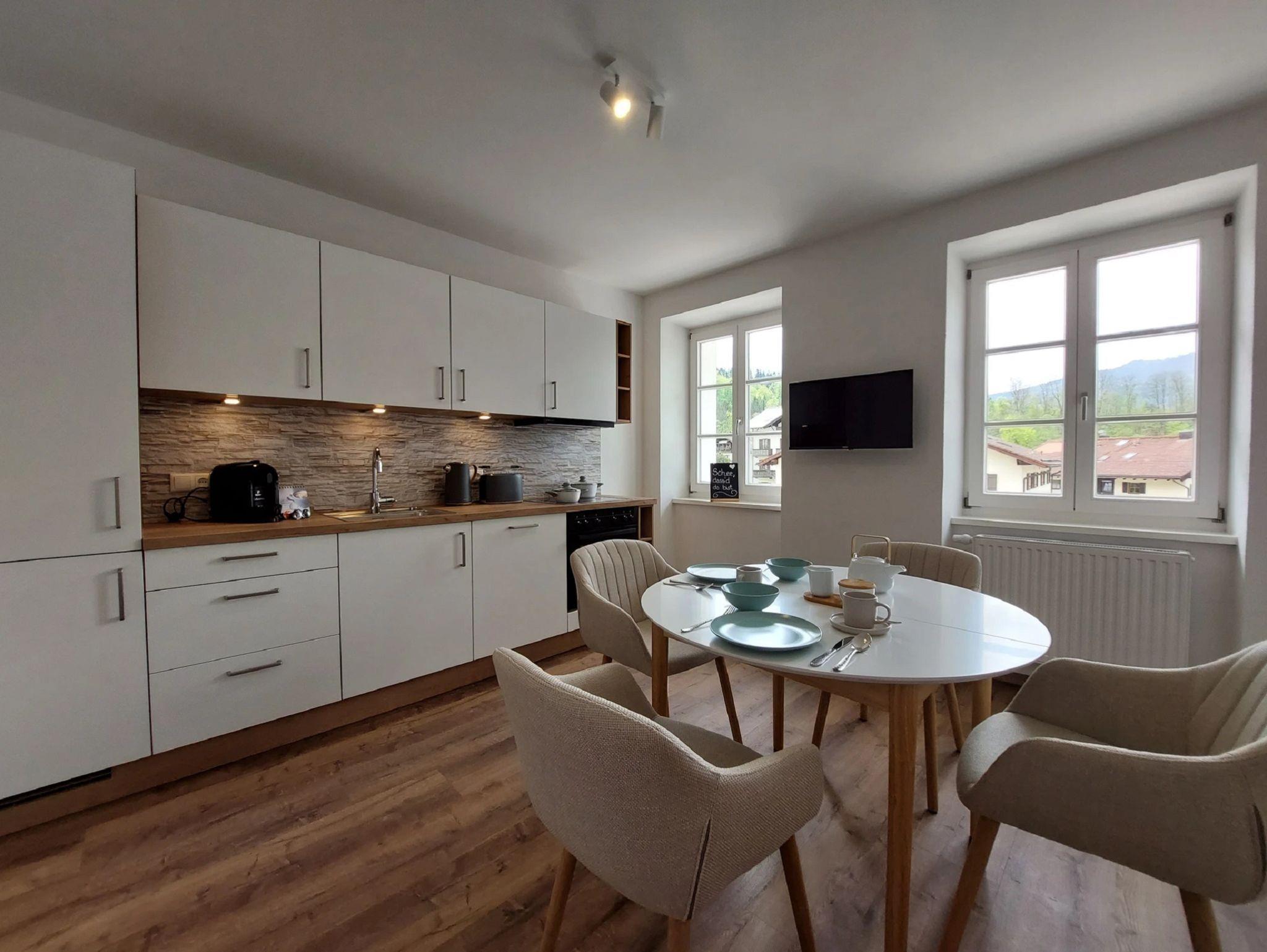 Neue, moderne Ferienwohnung • 80 qm • In unserer neu renovierten, modernen Ferienwohnung 1 mit Balkon werden Sie sich wohlfühlen! Die Ferienwohnung 1 befindet sich in der 1. Etage unseres neu sanierten Hauses. Sie wohnen auf großzügigen ca. 80 qm. Im Schlafzimmer – welches mit Bettwäsche sowie einer Kissenauswahl für Sie ausgestattet ist – finden Sie ein komfortables Boxspringbett (180x200 cm) für einen erholsamen Schlaf. Vom Wohnzimmer aus haben Sie Zugang auf den Balkon mit Aussicht auf die umliegende Berglandschaft inklusive Watzmann. In der großzügigen, vollausgestatteten Küche mit gemütlichem Essbereich finden Sie viele Küchenutensilien sowie eine Geschirrspülmaschine.Das neue, moderne Badezimmer – welches mit Handtüchern und Fön für Sie ausgestattet ist - verfügt über ein Fenster, eine Dusche mit flachem Einstieg, einen Waschtisch mit Spiegel und beleuchtetem Kosmetikspiegel sowie ein WC. Einen Smart-TV finden Sie im Wohn- und Schlafzimmer sowie in der Küche. Das Rauchen in der Unterkunft sowie das Mitbringen von Haustieren ist nicht gestattet.