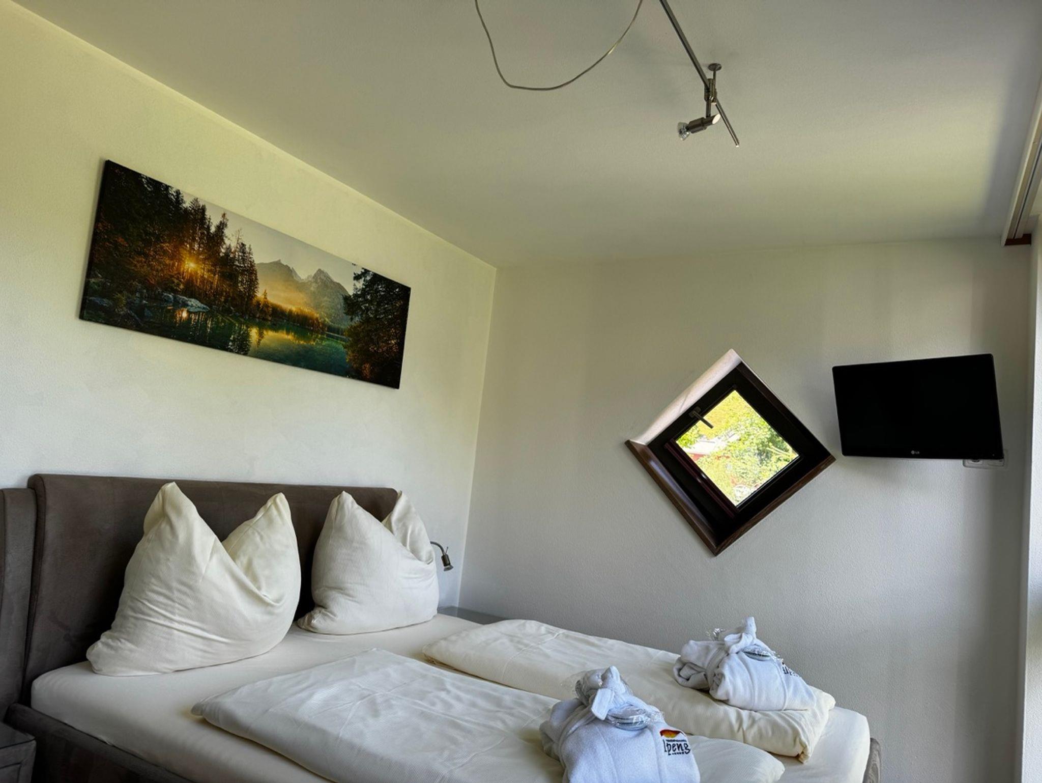 Die nach Süden ausgerichtete Terrasse der Ferienwohnung Kehlstein, bietet Ihnen einen traumhaften Bergblick auf den Obersalzberg, den Kehlstein und das Massiv des Hohen Göll's. Das nach Ost gemütliche ausgerichtete Schlafzimmer, hat ein Doppelbett mit Komforthöhe, Beistelltischen sowie ein kleiner Flat Screen-TV. Im Bad befindet sich eine Dusche, ein WC, ein Doppelwaschbecken, ein großen Spiegel mit zusätzlichen Vergrößerungsspiegel, ein Kosmetikeimer, dazu sind Handtücher, Bademäntel mit Schlappen, Toilettenpapier, Zahnbecher und Flüssigseife sowie Duschgel vorhanden. Die Küchen ist eine offene Küche die mit dem Wohnraum verschmelzt, mit einer kleinen Theke und 2 Barhockern. Sie ist voll ausgestattet mit allem was man braucht. Der helle Wohnbereich ist nach Süden hin ausgerichtet, mit einer großen Fensterfront, hier ist auch gleich der Essbereich mit einem großen Holztisch und vier Holzstühlen, von dort aus gelangt man zum Terrassenbereich auch mit gemütlichen Holzmöbeln. Bei Anmietung dieser Wohnung haben Sie die Möglichkeit eine Verbindung zur Wohnung Obersalzberg herzustellen durch die gedämmten Verbindungstüren, ideal für gemeinsam Reisende Päarchen oder Familien. Alle Wohnungen verfügen über freies WLAN. Zusätzlich bietet das Alpenglühn Brötchenservice vor Ihre Tür und Frühstück im Stüberl auf Vorbestellung an.