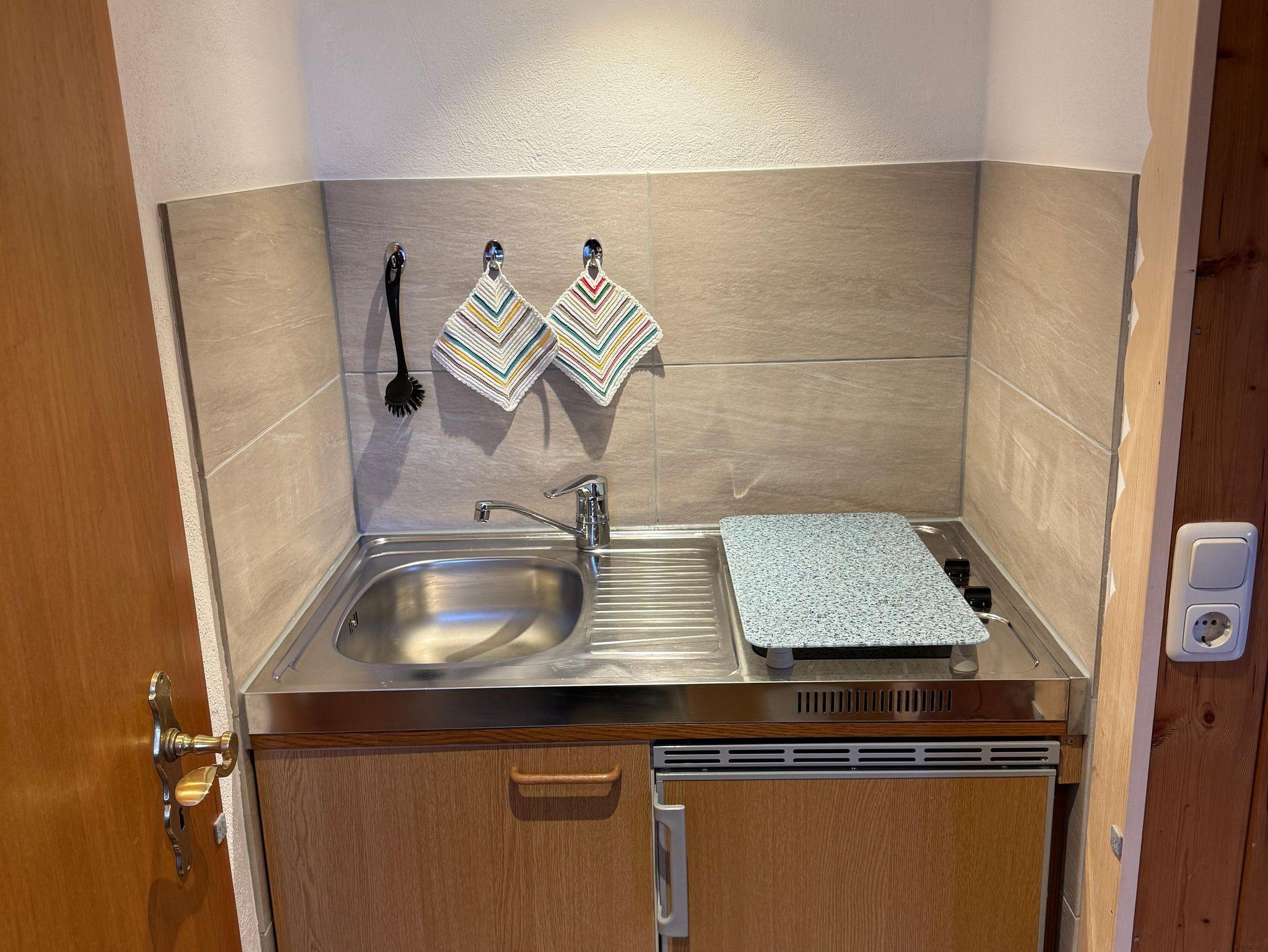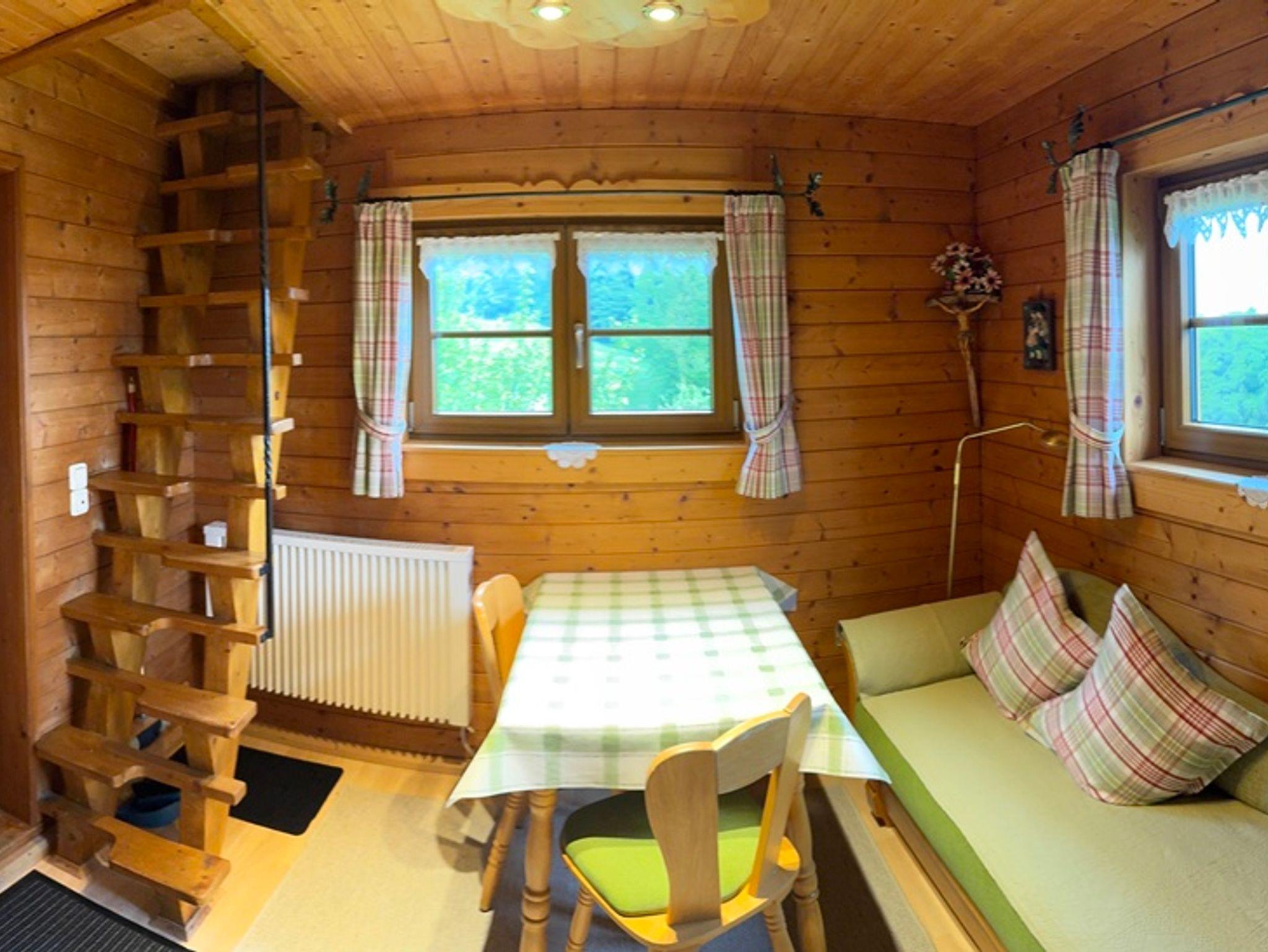 Das gemütliche Ferienhäuschen für zwei Personen ist im Untergeschoss mit Wohn-, Essbereich, einer Kochnische und einem kleinem Badezimmer ausgestattet. Das Schlafzimmer mit Doppelbett im Obergeschoss ist über eine Leitertreppe erreichbar. Kostenloses WLAN ist vorhanden.