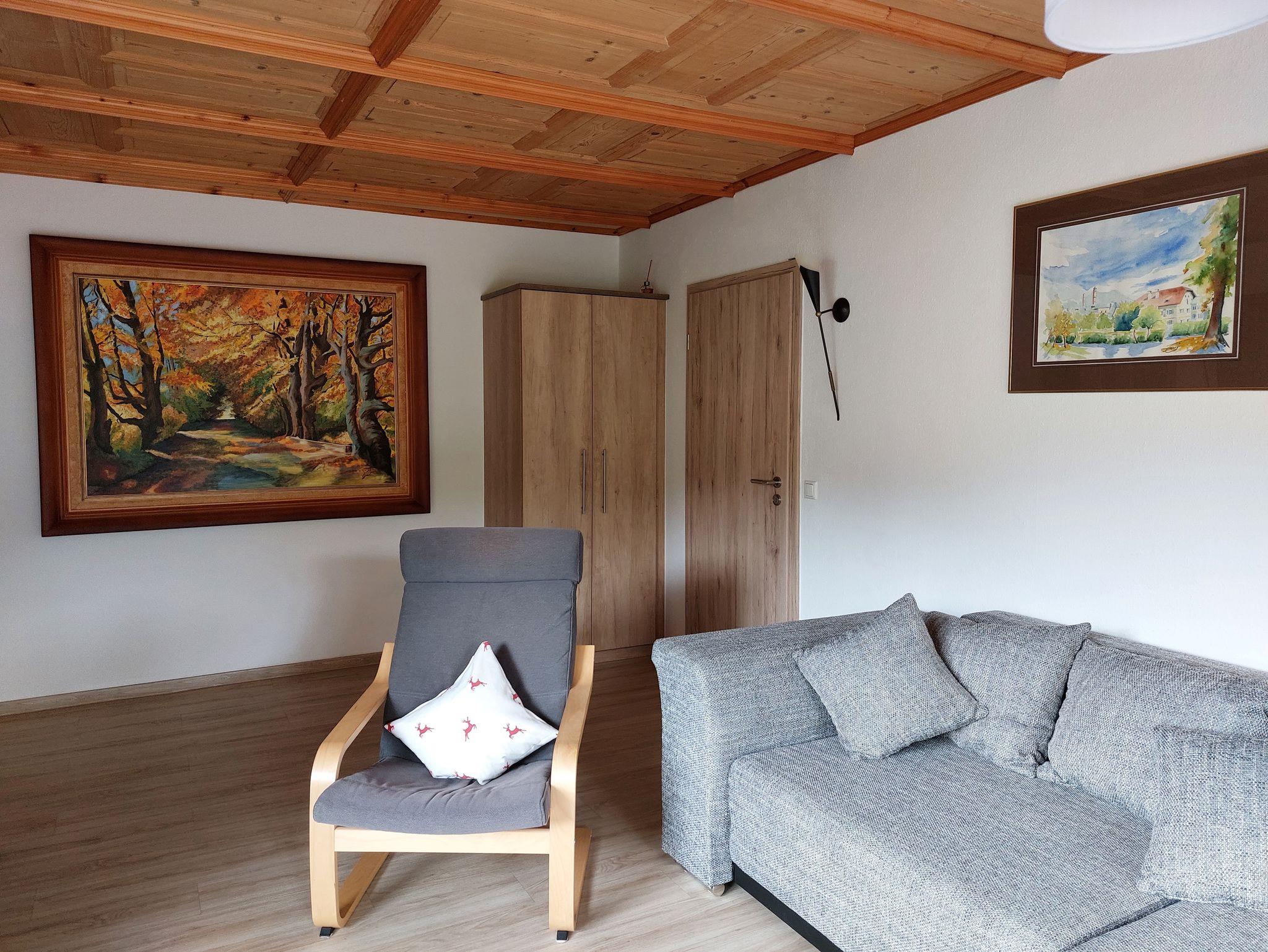 Diese komfortable Ferienwohnung verfügt über eine große überdachte Terrasse. Das angenehme Ambiente der Ferienwohnung lädt dazu ein den Aufenthalt zu genießen und sich richtig wohl zu fühlen. Die hochwertige Ausstattung bestehend aus Koch- und Essgeschirr, Besteck, Gläser, Bettwäsche und Handtücher sind in ausreichender Zahl vorhanden. Kaffeemaschine (Filter), Wasserkocher, Eierkocher, Toaster und Putzutensilien runden das Angebot ab. Babybett und Hochstuhl auf Anfrage möglich. Nichtraucherwohnung; Rauchen am Balkon gestatett. Keine Haustiere möglich.