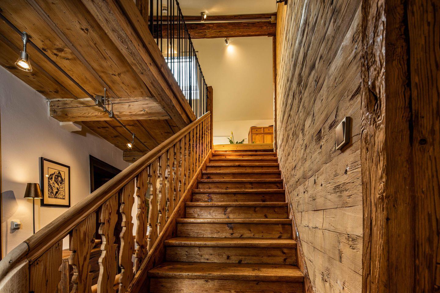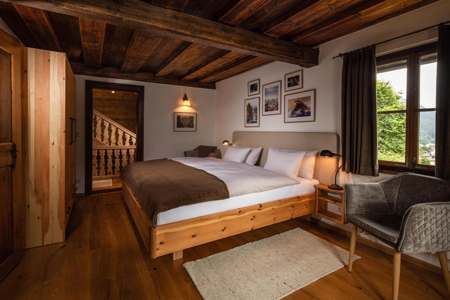 Die helle Wohnung mit 130m² Wohnfläche und eigenem Eingang erstreckt sich über zwei Geschosse und ist für maximal 4 Personen ideal geeignet um einen unvergesslichen Urlaub zu verbringen. Absolute Highlights dieser Wohnung sind die westseitige überdachte Terrasse und der private Garten mit Sonnenliegen auf der Südseite des Hofmusikerhauses. Beide stehen ausschließlich den Mietern dieser Wohnung zur Verfügung und bieten einen wunderbaren Blick auf den Markt Berchtesgaden und die umliegenden Berge.