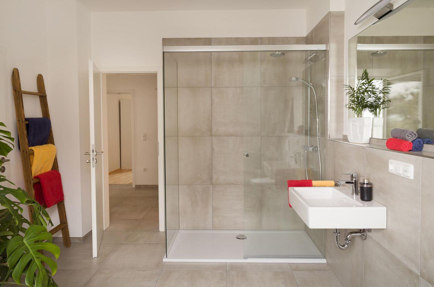 Ein echtes Highlight sind die zwei großzügigen Terrassen: Die Südost-Terrasse lädt zu sonnigen Frühstücken mit Bergblick ein, die West-Terrasse ist der perfekte Ort für ruhige Abende. Das große Badezimmer mit Regendusche, Fußbodenheizung und hochwertiger Ausstattung bietet zusätzlichen Wellnesskomfort, ergänzt durch ein separates Gäste-WC.