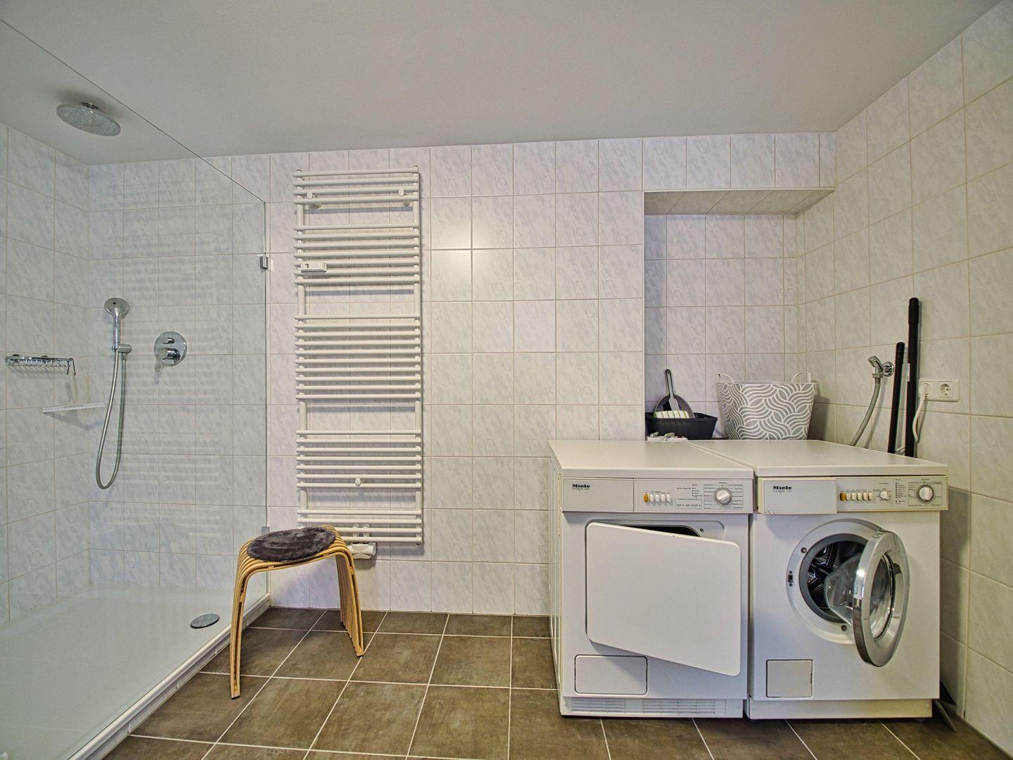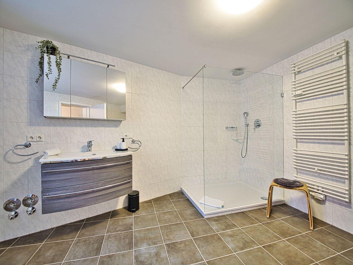 Das separate Schlafzimmer mit gemütlichem Doppelbett sorgt für erholsame Nächte. Das großzügige Badezimmer verfügt über eine ebenerdige Dusche, Waschmaschine und Trockner – perfekt für längere Aufenthalte oder Workation in den Alpen. Ein separates WC erhöht den Komfort zusätzlich. Schnelles Internet ist selbstverständlich vorhanden.