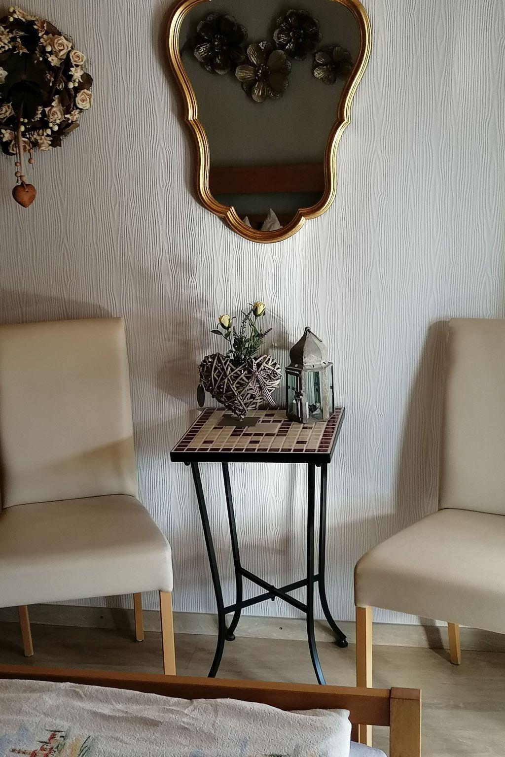 You will find a lovingly furnished apartment of approx. 50m² in a cosy ambience, which has a cosy kitchen-living room with a fully equipped kitchenette, a separate dining area offers enough space for up to three people. The comfortable couch corner, SAT-TV and reading material in the kitchen invite you to relax. The spacious bedroom has a large double bed with excellent mattresses and cosy bedding. The bright daylight bathroom is equipped with a flat-entry shower and WC.