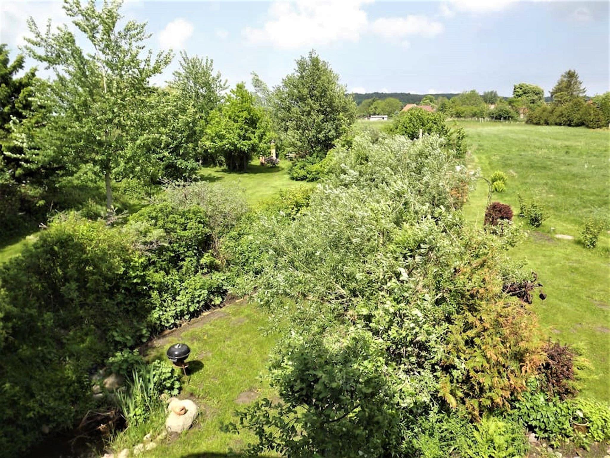Diese charmante Maisonette-Wohnung erstreckt sich über zwei Etagen und nimmt eine Hälfte der eindrucksvollen, verglasten Fachwerkfassade des Landhauses Scheune ein. Zur Wohnung gehört ein kleiner privater Garten mit gemütlicher Sitzecke. Dahinter erstrecken sich der gemeinschaftlich genutzte Garten sowie Felder bis zu den Patziger Bergen ? ein idyllischer Rückzugsort mitten in der Natur.