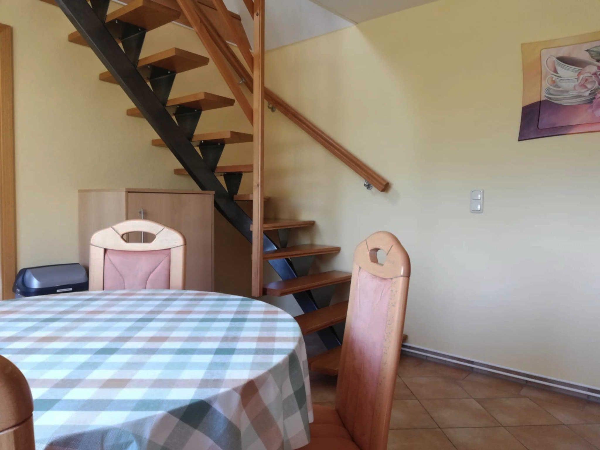 Von der Küche gelangen Sie über eine Treppe ins Obergeschoss, dort liegen die Schlafzimmer.