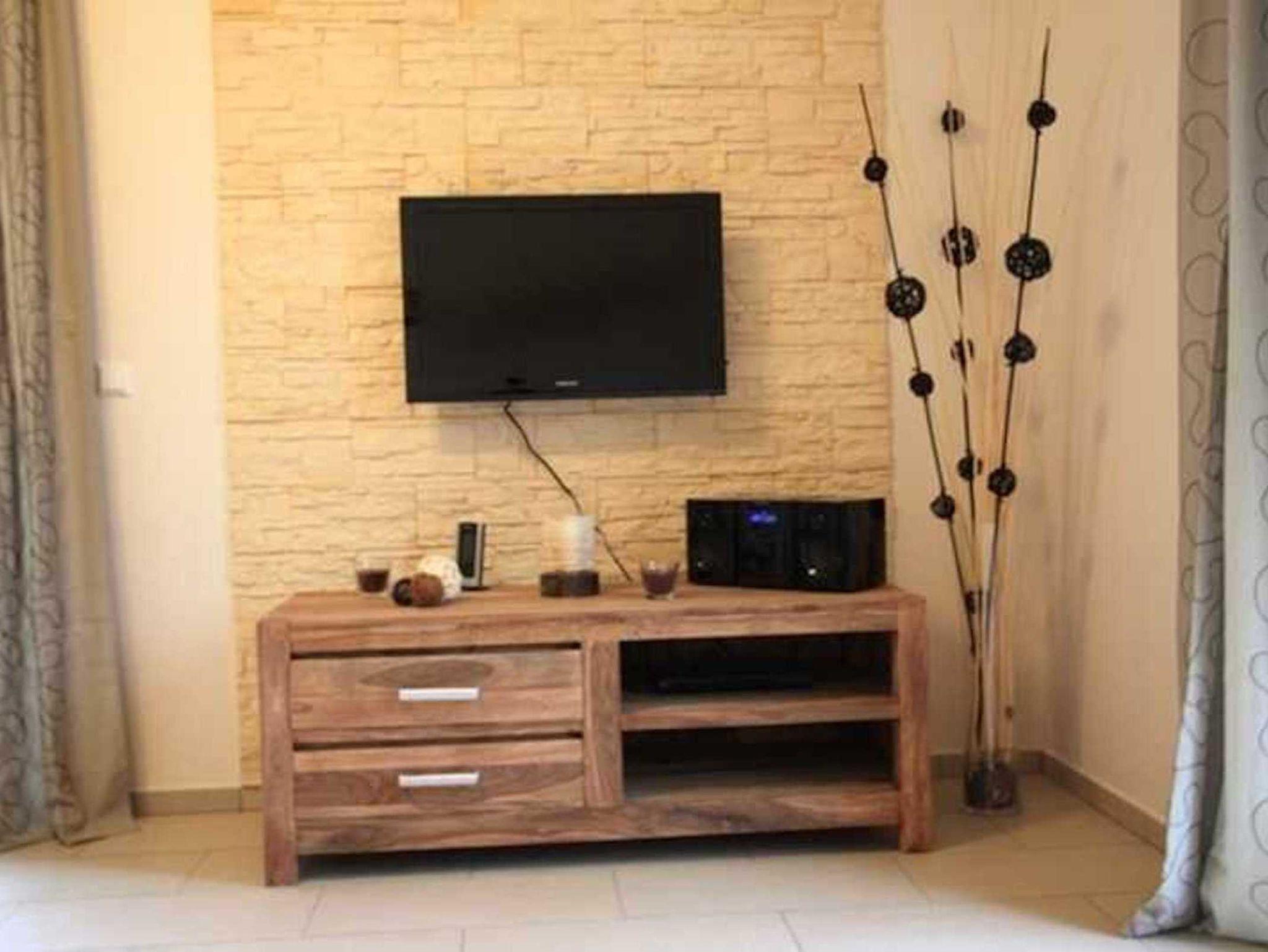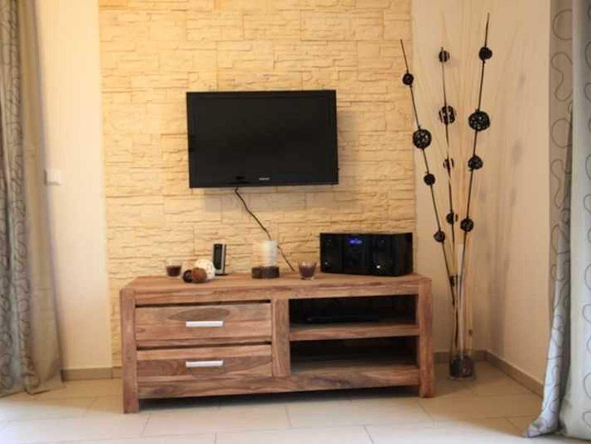 Die Ferienwohnung besitzt 2 Schlafzimmer, eines mit Doppelbett und direktem Zugang zum Garten und das andere mit zwei Einzelbetten. Somit bietet die Wohnung ausreichend Platz für 4 Personen. Ein Babybett und ein Hochstuhl werden auf Anfrage kostenlos zur Verfügung gestellt. Das Tageslichtbad ist mit Dusche, WC und Badewanne ausgestattet. Die offene voll ausgestattete Küche verfügt über einen Backofen, Kühl-Gefrier-Kombination, Geschirrspüler und Mikrowelle, sowie Kaffeemaschine, Wasserkocher und Toaster. In der Küche kann man es sich an dem großen Esstisch zusammen schmecken lassen. Auf der anderen Seite des Raums befindet sich das großzügige Sofa und die mit Dekosteinen verzierte Fernsehwand. Neben einem Flachbild-Fernseher und DVD-Player gibt es eine Musikanlage mit Dockingstation. In einem Schlafzimmer gibt es zusätzlich einen weiteren CD-Player. Vom Wohnzimmer aus gelangt man durch die große Doppeltür auf die Terrasse im Garten, wo sie von morgens bis abends in der Sonne baden und die Ruhe genießen können, während die Kinder im Garten spielen. Gartenmöbel mit Auflagen und ein Grill sind ebenfalls vorhanden.