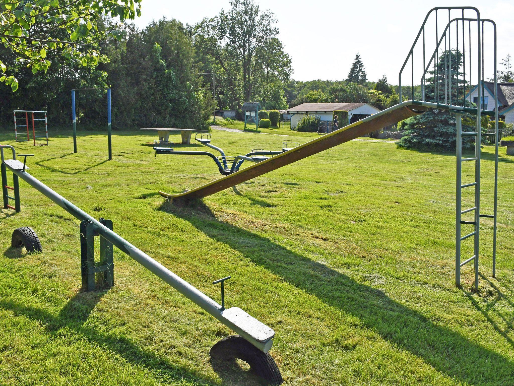 Das von einer Wiese umgebene Ferienhaus wurde modern und liebevoll eingerichtet, es verfügt auch über einen kleinen Kamin und eine schöne, überdachte Terrasse mit Gartenmöbeln und Grillmöglichkeit. Zum Objekt, das sehr viel Platz für Familien mit Kindern bietet, gehören auch ein Spielplatz und eine Liegewiese zum Sonnen.
