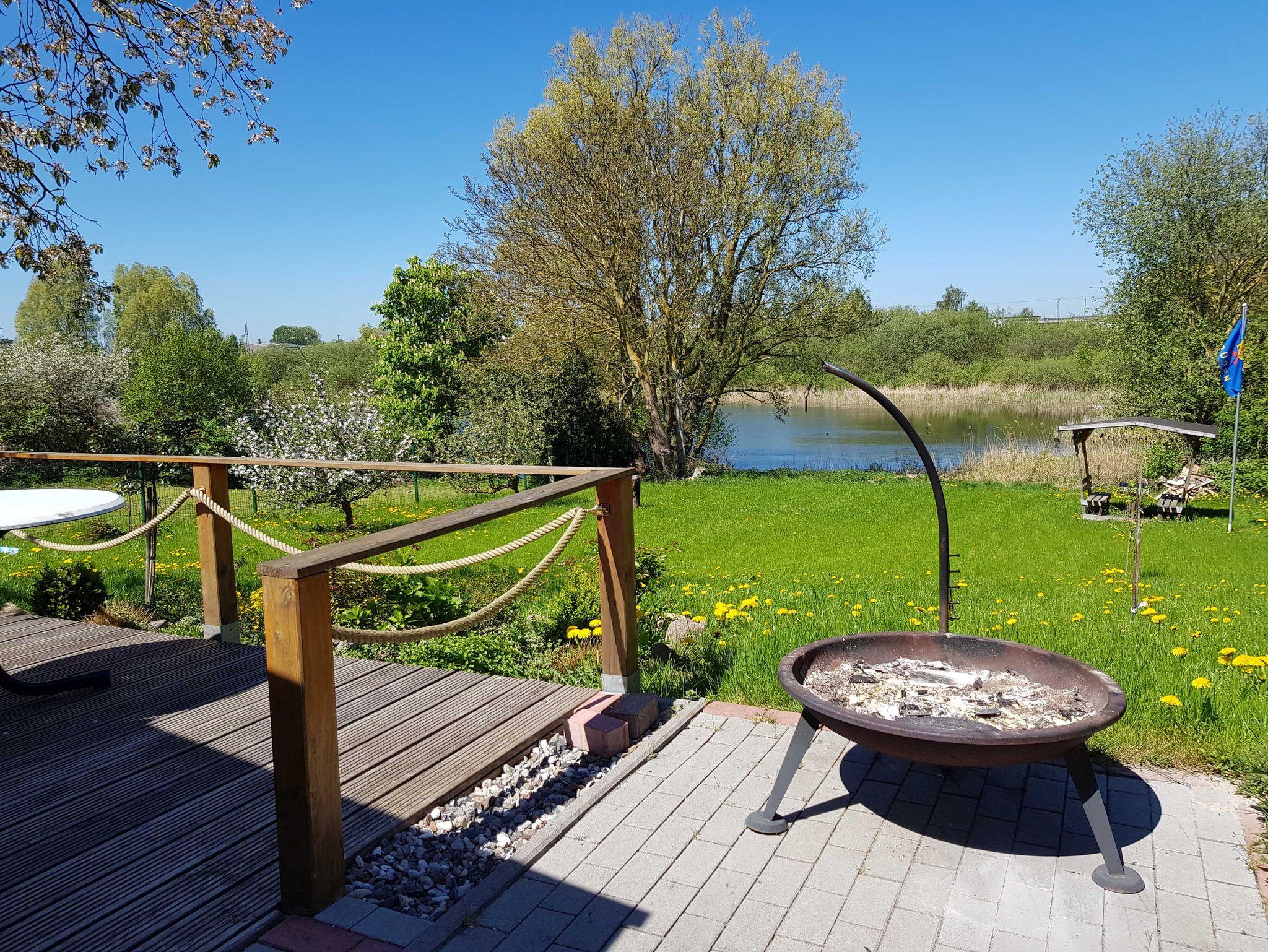 Die gemütlich eingerichtete 2-Raum Erdgeschosswohnung mit Einbauküche und Bad befindet sich in einem separaten Gebäude auf dem Grundstück eines Einfamilienhauses mit Zugang zu einem kleinen See. Ein Holzpavillon mit Sitzgruppe und ein gut ausgestattetes Blockhaus mit Terrasse laden die Gäste zum Verweilen am See ein. Rauchen in der Wohnung und Haustiere sind nicht erlaubt. Parkplätze und Unterstellmöglichkeiten für mitgebrachte Fahrräder sind vorhanden.