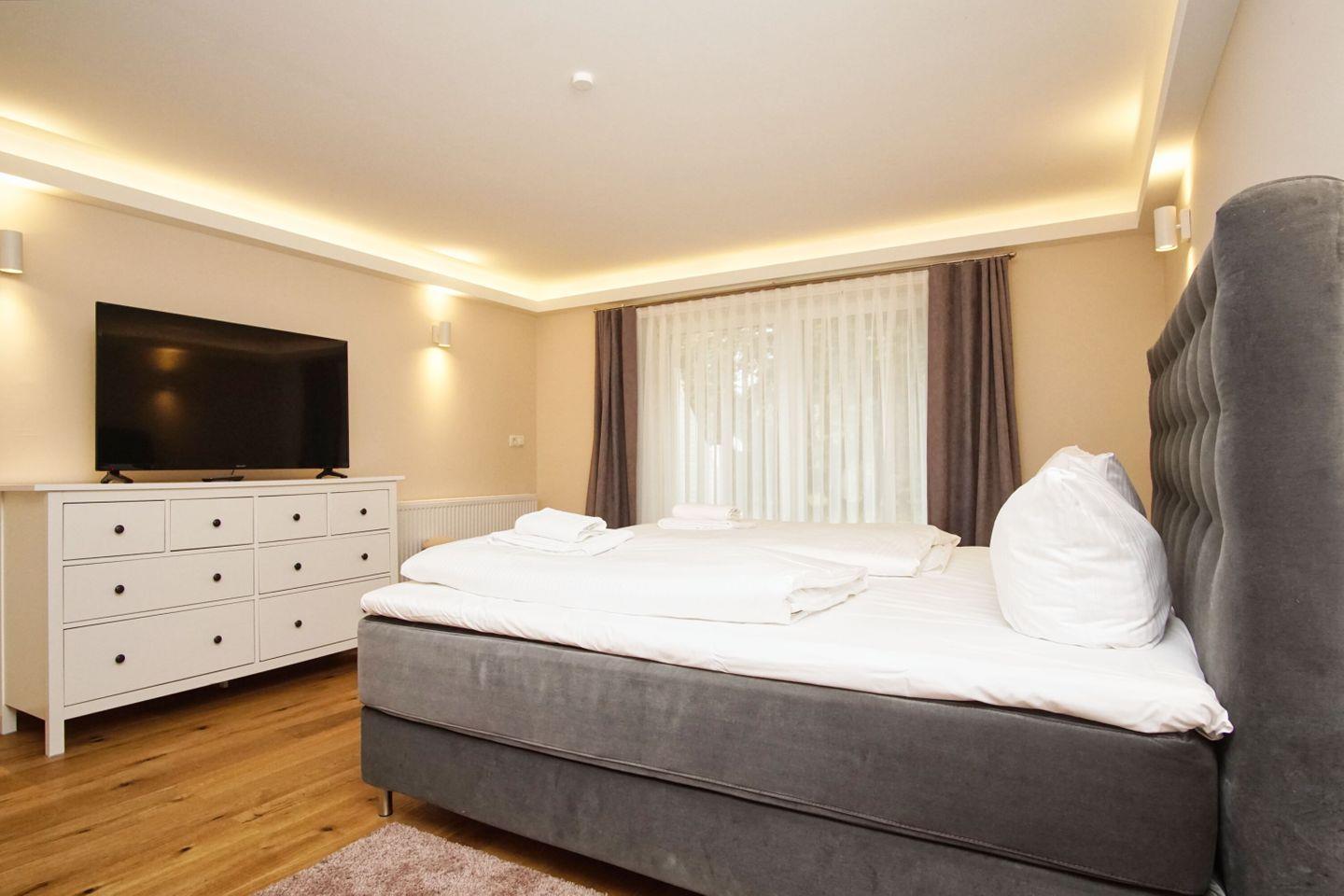 SCHLAFEN // zwei Schlafzimmer mit bequemen Doppelbetten, Terrassenzugang und Flachbild-TV, drittes Schlafzimmer mit Etagenbett, Schlafcouch im Wohnzimmer s.o. ++