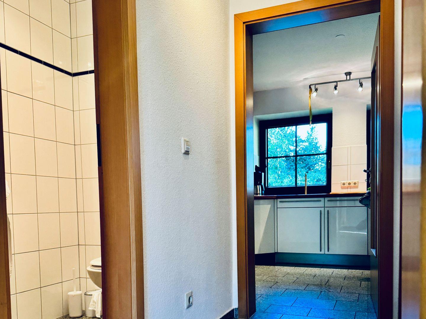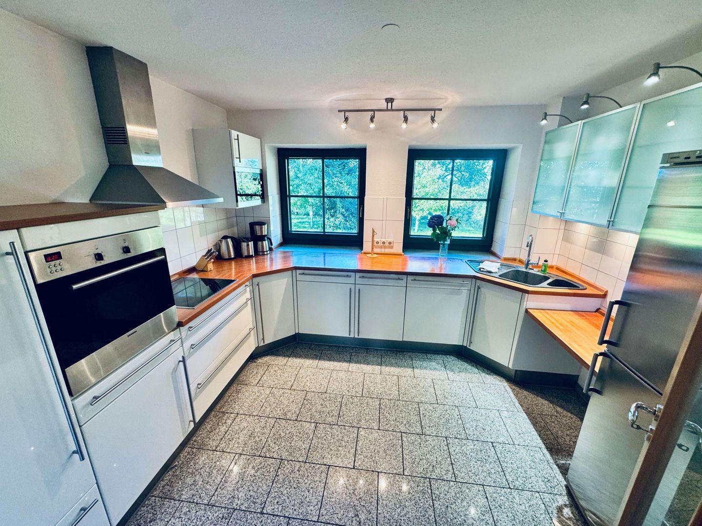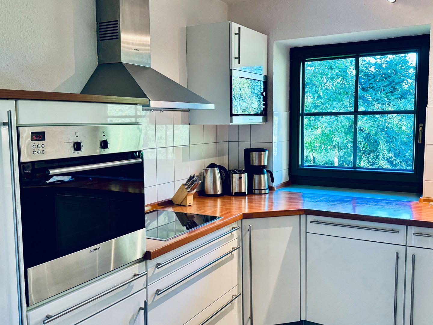 KÜCHE // geschlossenen Küche mit Ceranfeld, Kühlschrank mit Gefrierfach, Backofen, Toaster, Wasserkocher, Kaffeemaschine, reichlich Besteck, Geschirr und Küchenutensilien ++