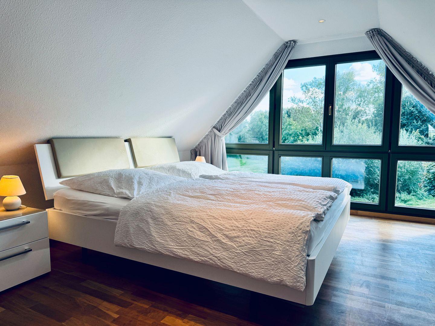 SCHLAFEN // 3 sep. Schlafzimmer im Obergeschoss, zwei mit jeweils einem Doppelbett und Flachbild-TV, eins mit einem Ausziehbett ++