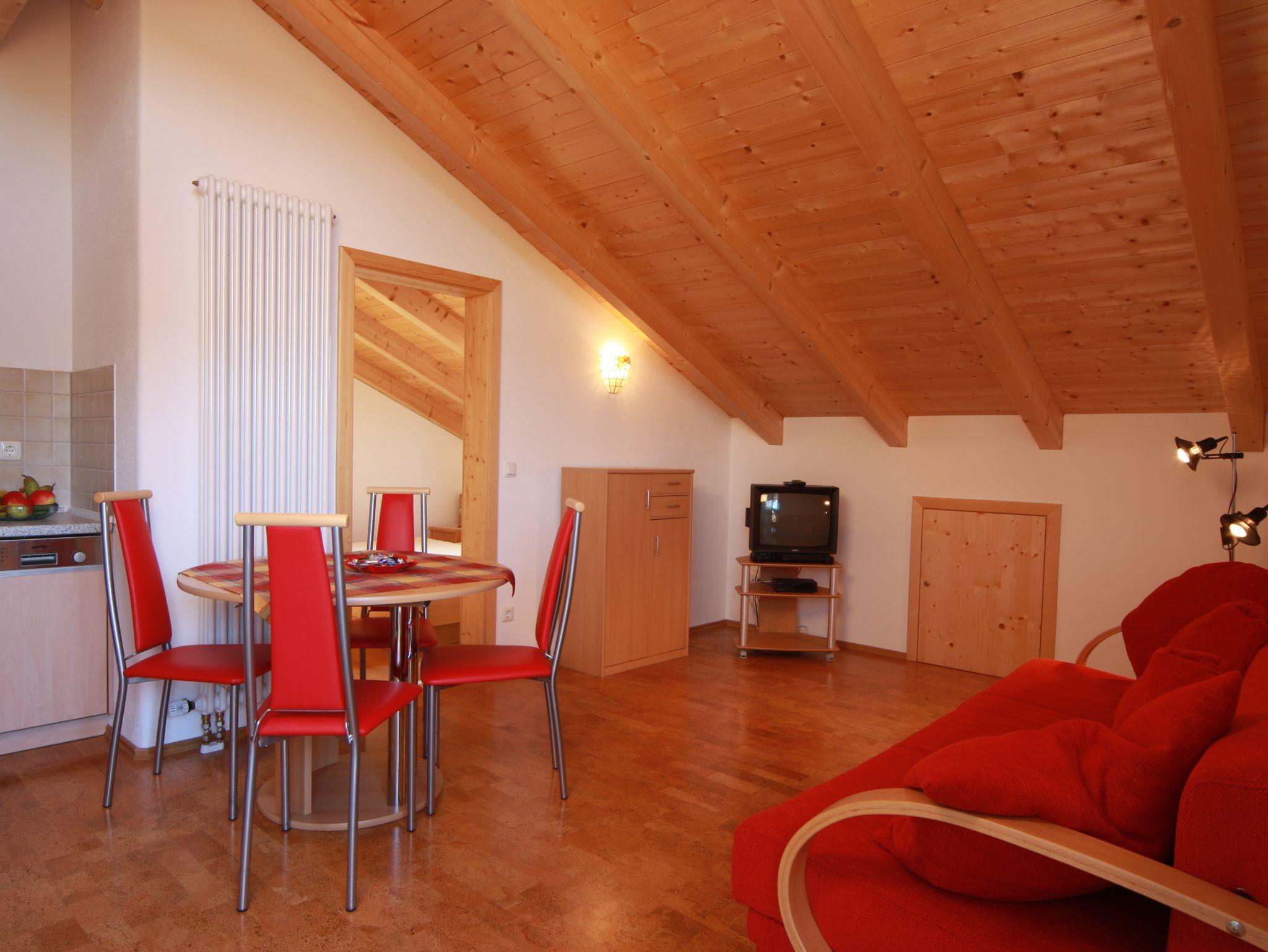 Die gemütlich eingerichtete Wohnung im Dachgeschoss (2. Stock) verfügt über 1 Wohn- und 1 Schlafraum. Dusche/WC. Der Wohnraum ist ausgestattet mit einem Esstisch und vier Stühlen, Kommode, Couch (ausklappbar) und Couchtisch, Leselampe mit Spots, Flachbildschirm mit Satelitenanschluß. In der Küchenzeile befinden sich ein Geschirrspüler, Backrohr und eine Mikrowelle. Das Schlafzimmer verfügt über einen 2-türigen Schrank und ein Doppelbett mit einer Länge von 2 Metern. (Einzelbetten sind nicht möglich). Vom Balkon aus haben Sie einen seitlichen Bergblick zur Kampenwand, auch ist das Dorf mit der Kirche zu sehen. Ausgestattet ist der Balkon mit einem Gartentisch und Stühlen sowie einen Sonnenschirm. Es steht Ihnen kostenloses W-lan zur Verfügung.