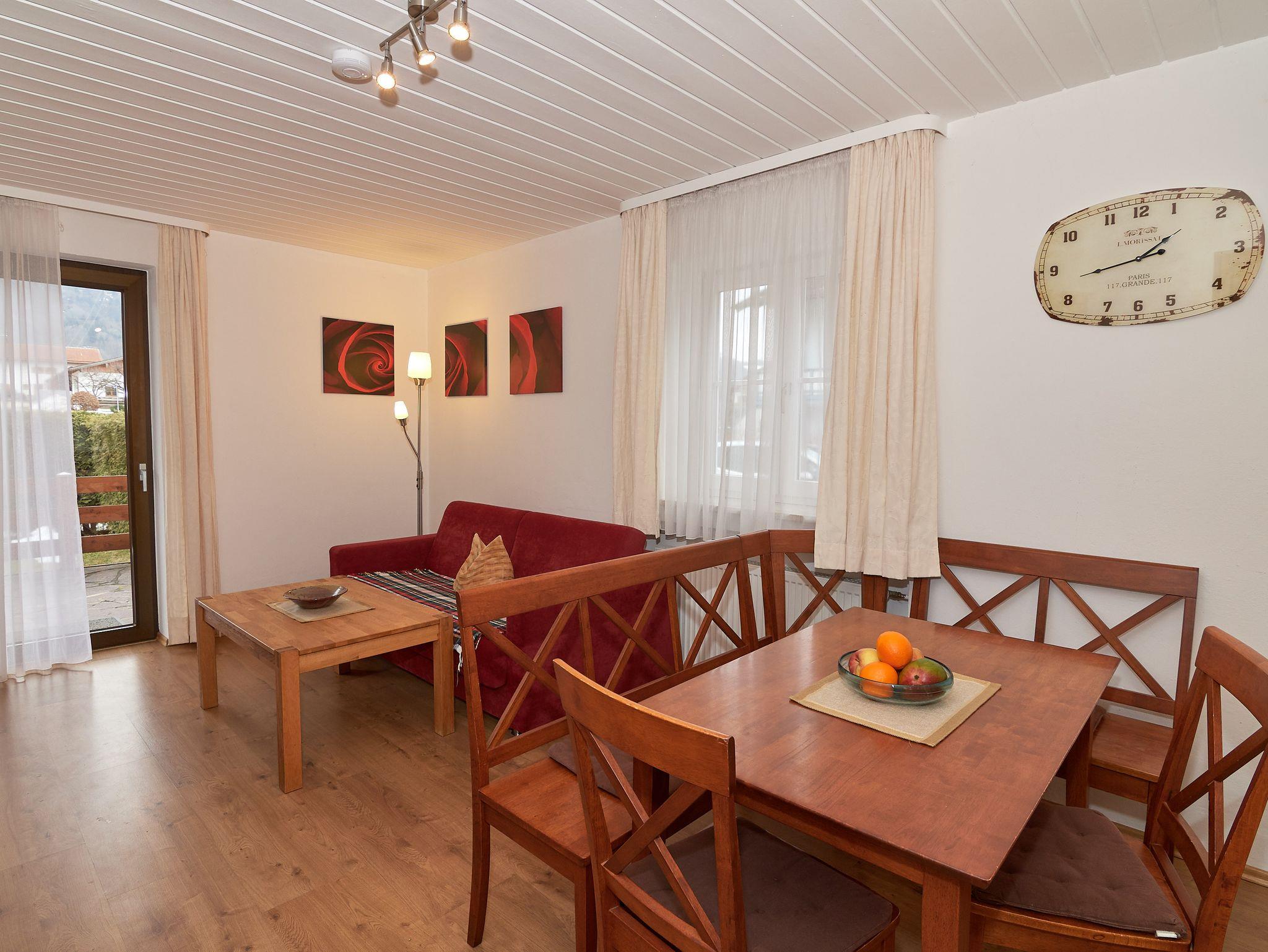 Dangl GbR, Gästehaus Sonnenhof - inkl. Chiemgau Karte, 03 Ferienwohnung Maria Eck für 3 Pers. 45 qm. Küche, 1 Wohnraum, 1 Schlafzimmer, Terrasse