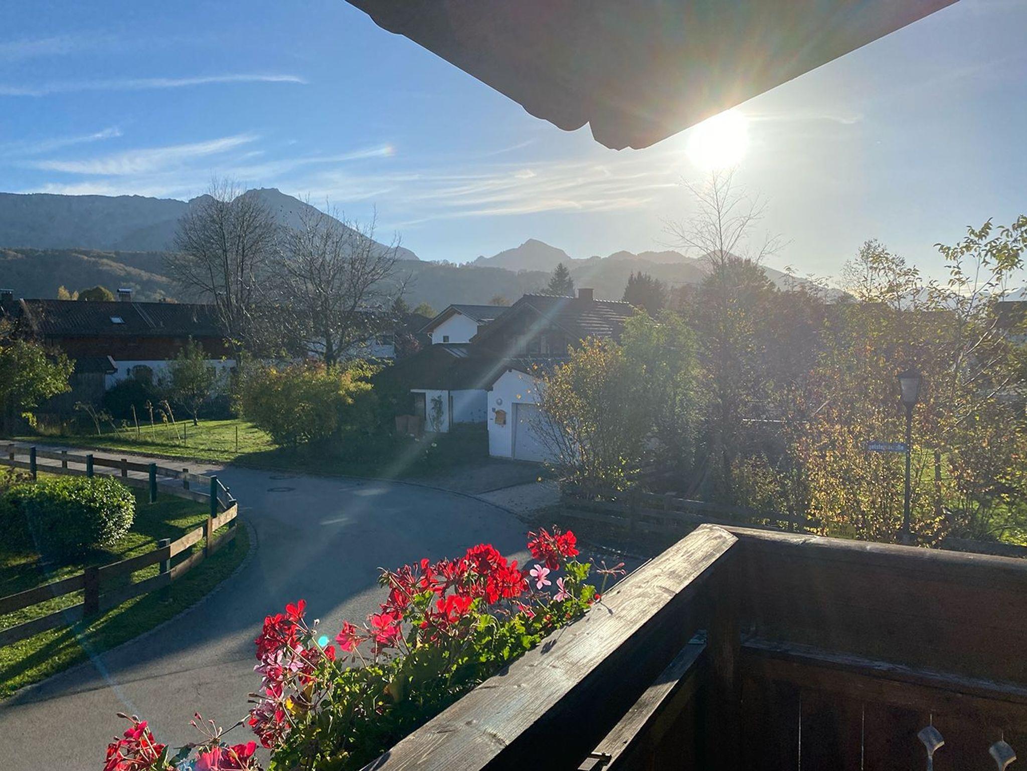 Die Wohnung (52 qm) liegt im 1. Stock des Anbaus und verfügt über Wohnzimmer, Schlafzimmer, separate Küche, Essplatz, Dusche/WC und zusätzliches WC. Vom großen Rundum-Balkon (Süd-West-Seite) hat man freien Blick auf unseren Hausberg, den Hochfelln. Die Westseite kann durch eine große Markise vor zu starker Sonne geschützt werden. PKW-Stellplatz ist vor dem Haus auf unserem Grundstück. WLAN inklusive. Grillplatz im Garten. Waschmaschine und Trockner gegen Gebühr. Brötchenservice auf Anfrage.Wohnzimmer: Sofagruppe 4 Pers., Schlafcouch 2 Pers., Sideboard, LCD-TV (SAT).Schlafzimmer: Doppelbett 180 x 200 cm mit geteilter Wendematratze mit 2 Härtegraden, 4-türiger Kleiderschrank, Bügeleisen, Ventilator, Babybett auf Anfrage, inklusive Bettwäsche.Küche: Einbauküche mit 4-Platten-Herd, Kombi-Mikrowelle, Kühlschrank mit Gefrierfach, Kaffeemaschine, Senseo, Toaster, Eierkocher, secke: Eingebaute Essecke für 4 Personen.Balkon: Rundum-Balkon mit Bergblick in Süd-West-Lage mit Sitzgruppe für 4 Personen und Sonnenmarkise.Dusche mit WC: inklusive Handtücher, FönZusätzliches WC