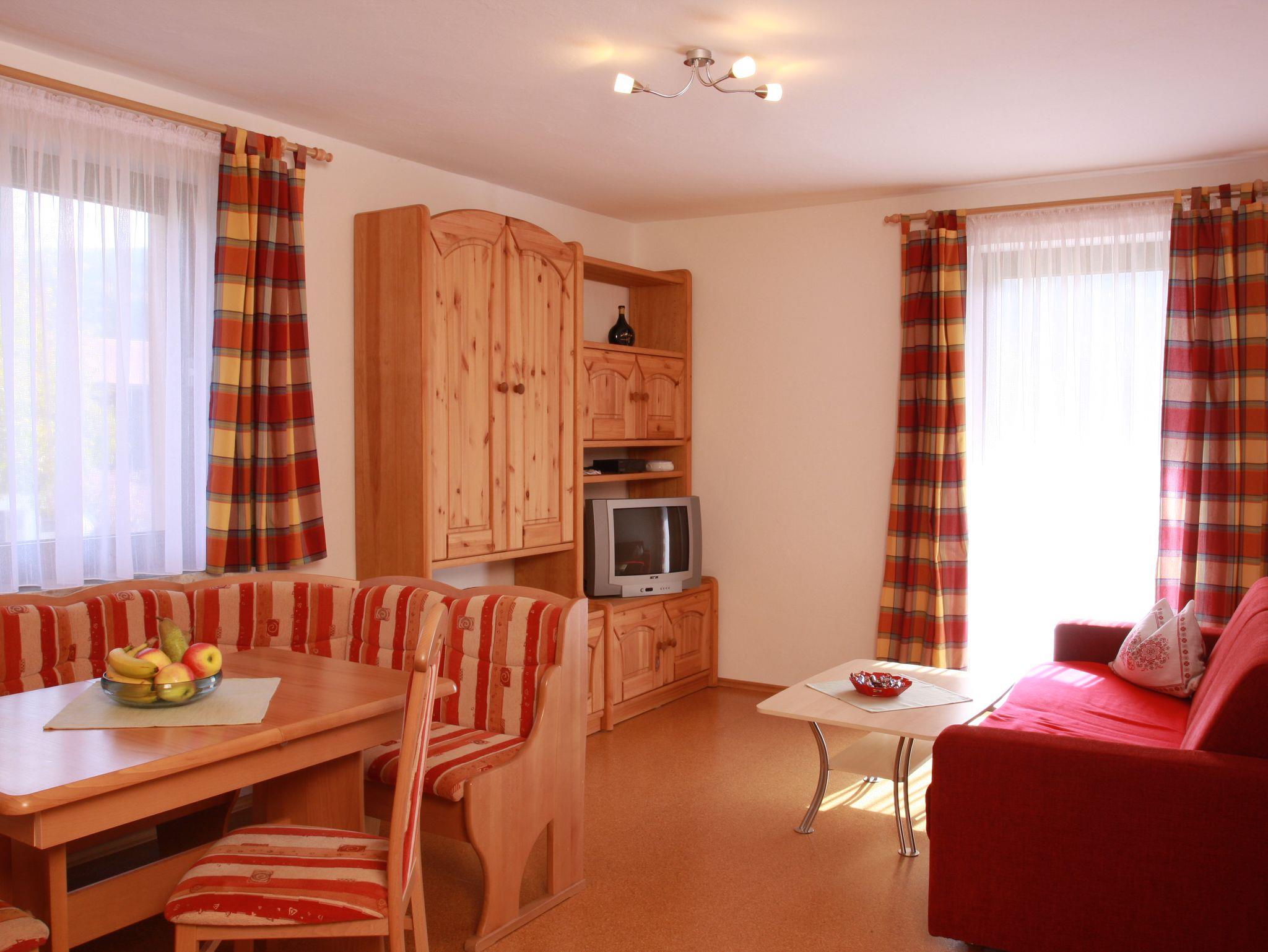 Die gemütlich eingerichteten Wohnungen im 1. Stock verfügen über 1 Wohn- und 1 Schlafraum. Dusche/WC. Der Wohnraum ist ausgestattet mit einer Sitzecke für 4 Personen, Couch (ausklappbar), Leselampe mit Deckenfluter, Flachbildschirm mit Satelitenanschluß. In der Küchenzeile befinden sich ein Geschirrspüler, Backrohr und eine Mikrowelle. Das Schlafzimmer verfügt über einen 3-türigen-Spiegelschrank und ein Doppelbett mit einer Länge von 2 Metern. (Einzelbetten sind nicht möglich). Der Blick vom Balkon fällt auf den Hochfelln und den Hochgern. Der Balkon ist mit Stühlen, Tisch sowie einen Sonnenschirm ausgestattet. Es steht Ihnen kostenloses W-lan zur Verfügung.
