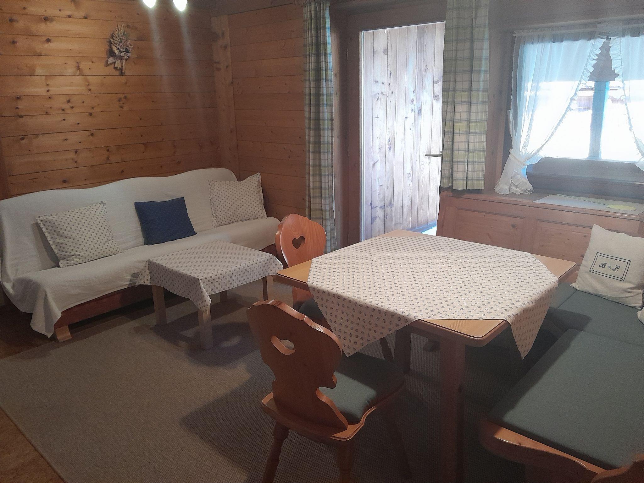 Die Ferienwohnung verfügt über eine komplett ausgestattete Küche ( E-Herd mit Backofen,Kaffeemaschine,Wasserkocher, Toaster, Geschirrspülmaschine)die im Wohnzimmer integriert ist. Gemütliche Essecke und Couch, Kabel TV, WLAN. 1 großes Schlafzimmer mit einem Doppelbett aus Zirbenholz, 1 Schlafzimmer mit 2 Einzelbetten, Dusche/WC. Überdachter Ostbalkon, der mit Gartenmöbel ausgestattet ist, eigenet sich zum Frühstücken oder auch nur zum Ausruhen. Wäscheleine und Wäscheständer. Blick in die Natur und Garten.