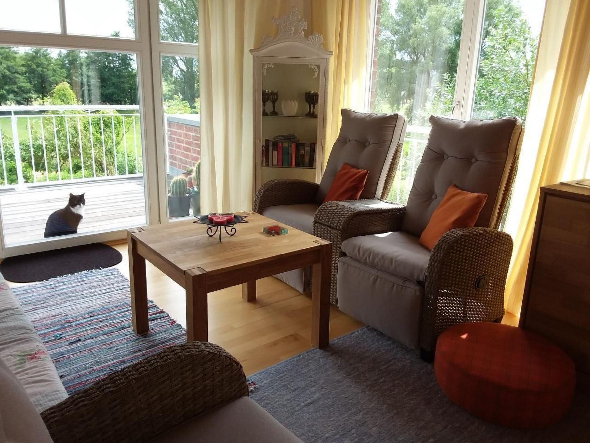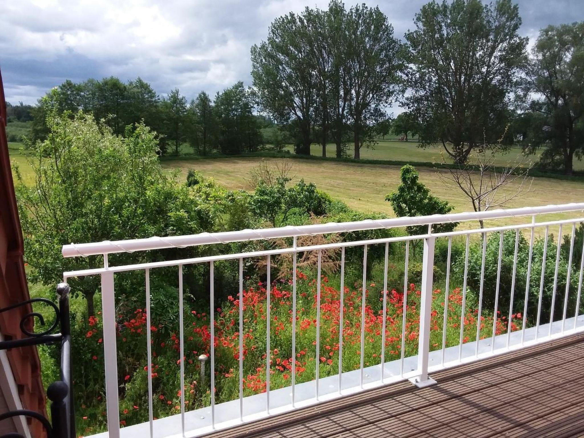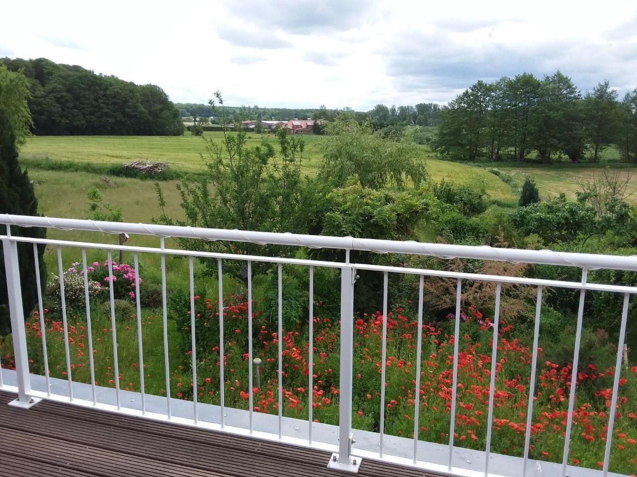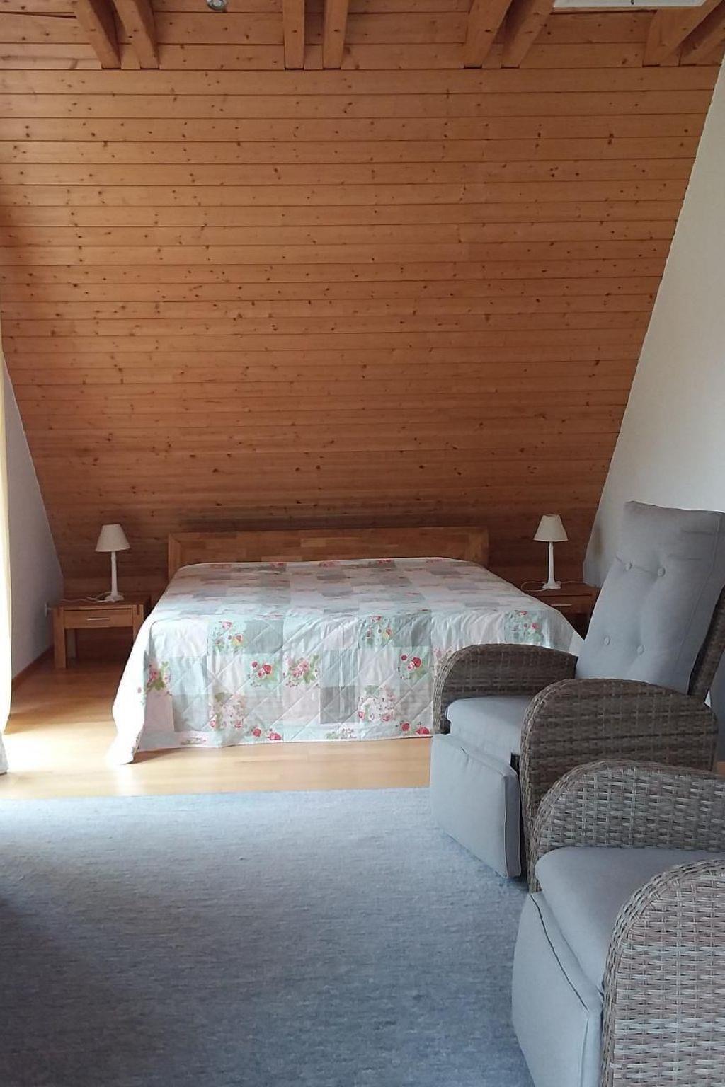 The outdoor area turns out to be a true paradise for those seeking relaxation. On a spacious plot of around five thousand square metres with a garden, you have endless space to play, run around, relax and linger. A south-facing terrace and a south-west-facing balcony offer idyllic views of grazing paddocks, and at dusk you can watch the natural spectacle of deer, hares and foxes. Dog owners will be delighted to hear that four-legged friends (dogs only) are also very welcome here.