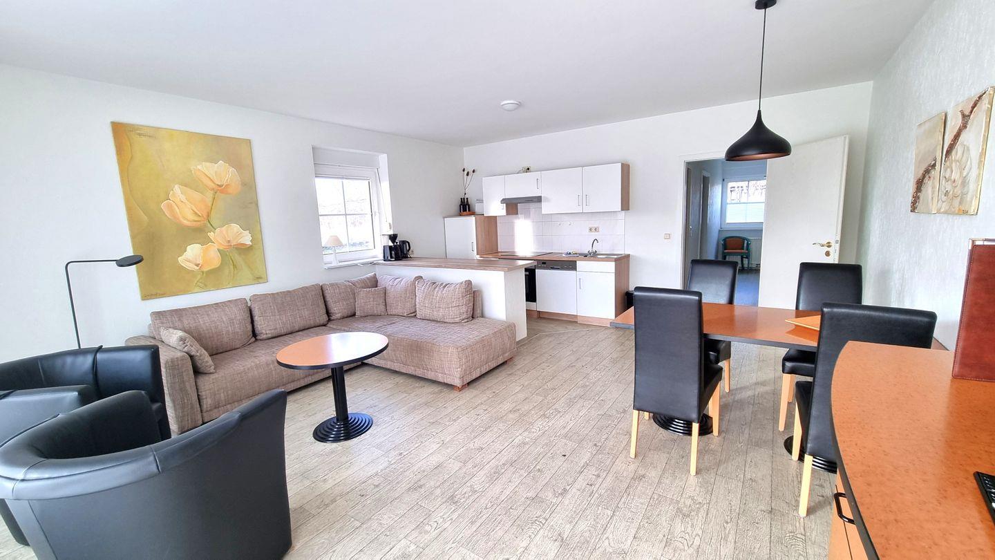 Eine integrierte Küchenzeile mit gemütlicher Essecke bietet alles, was Sie für eine unkomplizierte Selbstverpflegung benötigen.