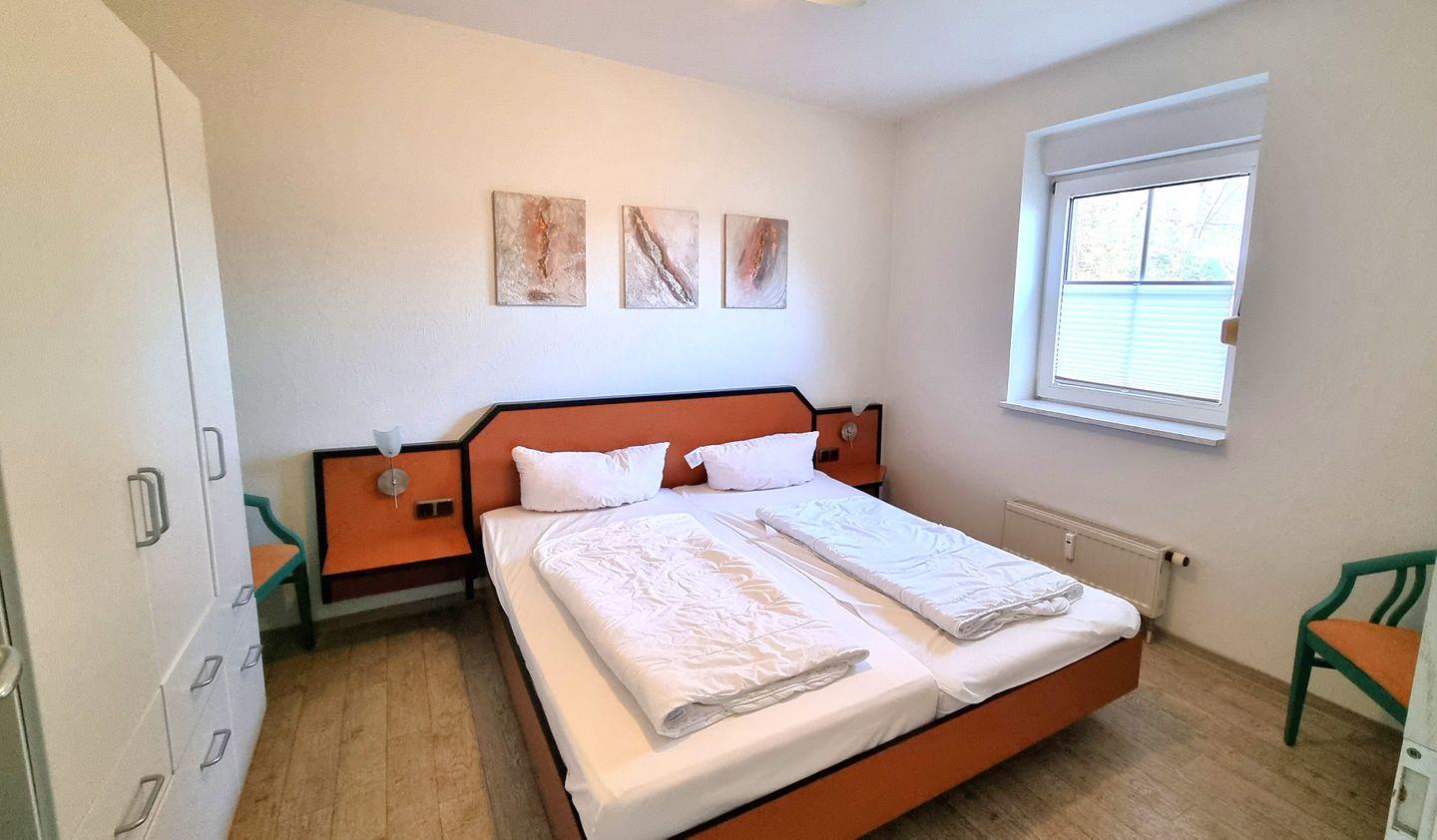 Das separate Schlafzimmer ist mit einem komfortablen Doppelbett ausgestattet.