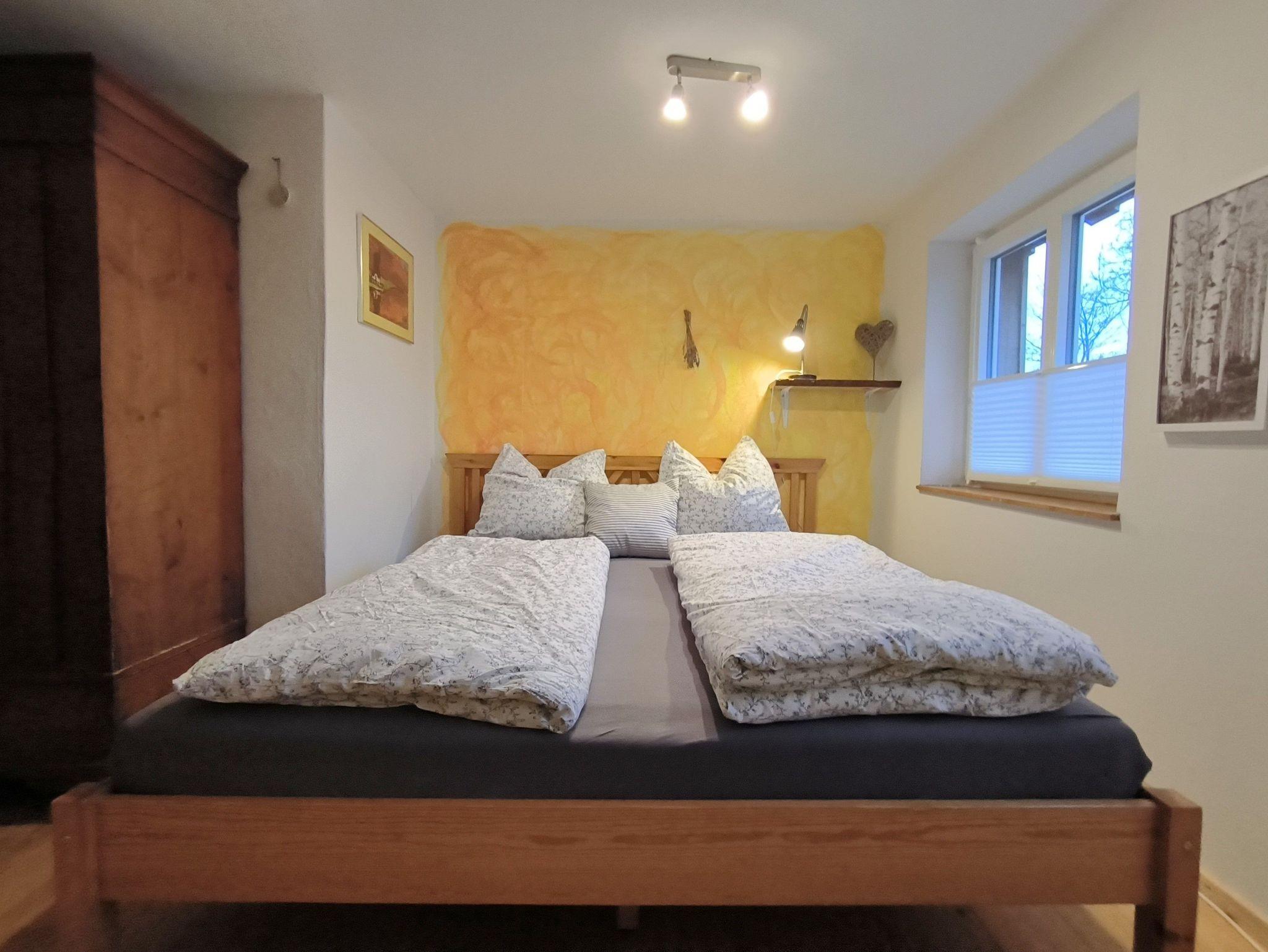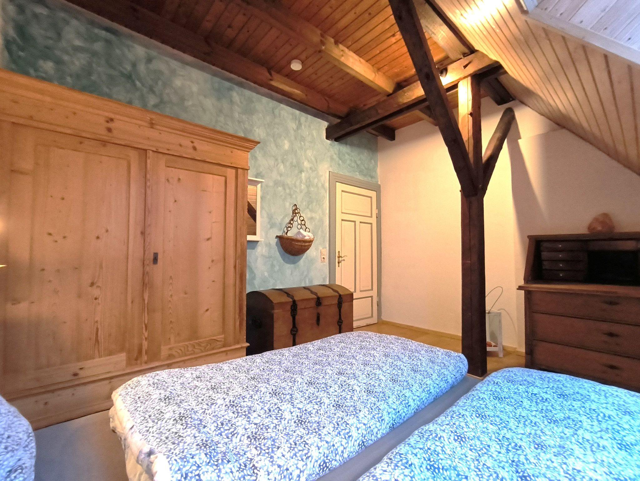 Im Schlafzimmer mit Dachschräge steht ein Bett mit 1,80m x 2,00m, das Doppelbett im zweiten Schlafzimmer ist 2,00 x 2,00m groß.