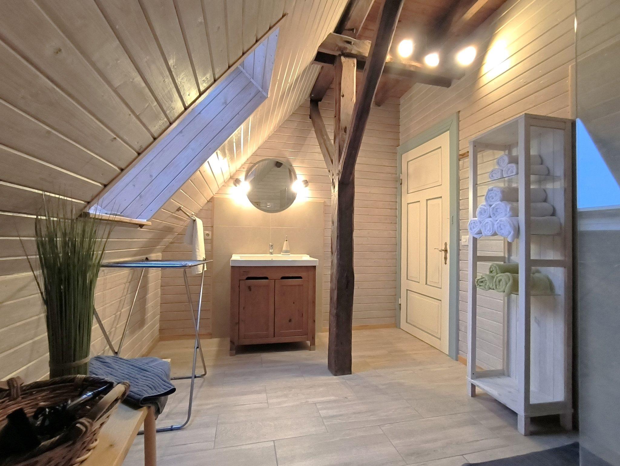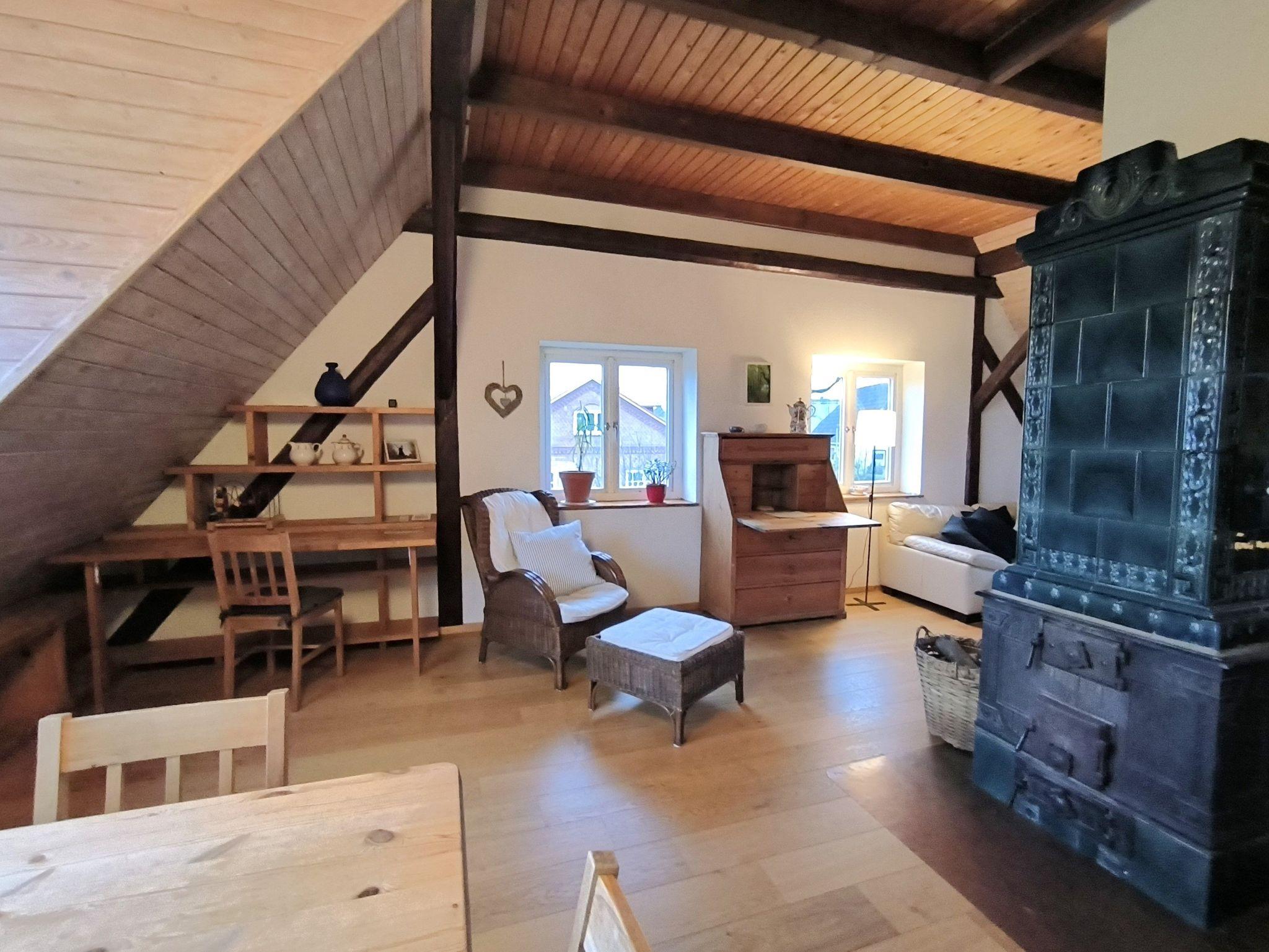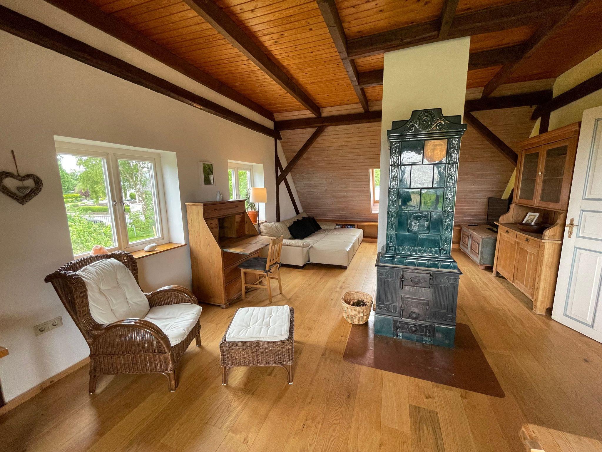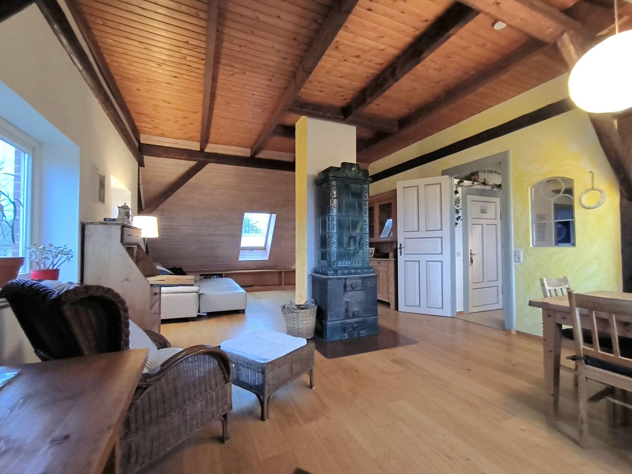 Die Wohnung Weitblick ist 80 qm groß und liegt im ausgebauten Dachgeschoss eines alten Bauernhauses. Sie ist liebevoll und gemütlich eingerichtet und besteht aus zwei Schlafzimmern mit Doppelbett, einem Wohnzimmer mit Sofa, Esstisch, Kamin, Sekretär und TV, einem Bad mit Dusche und WC sowie einer Küche mit Herd und Backofen. Zur Wohnung gehört ein wunderschöner Garten mit Grillmöglichkeit, ein Parkplatz und eine Unterstellmöglichkeit für Fahrräder. Die Wohnung ist für vier Personen eingerichtet, eine zusätzliche Schlafmöglichkeit gäbe es auf dem Sofa im Wohnzimmer (gegen Gebühr), zusätzliche Schlafmöglichkeiten (gegen Gebühr) sind auf Anfrage möglich. Gerne stellen wir ein Kinderreisebett zur Verfügung (gegen 10,- Euro Gebühr), ein Hochstuhl ist auch vorhanden.
