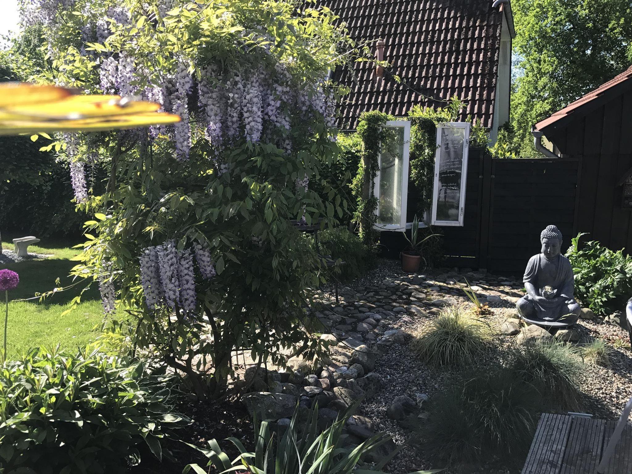 Haus mit Garten, Gästeterasse vorhanden. KFZ Stellplatz vor dem Haus. Ferienwohnungen liegen im 1.Stock. Garten mit Steingärten angelegt. Gästeterasse mit Strandkorb. Grill und Liegemöglichkeiten vorhanden. Seperater Eingang. Haus liegt in einer ruhigen Seitenstraße mit Hanglage.