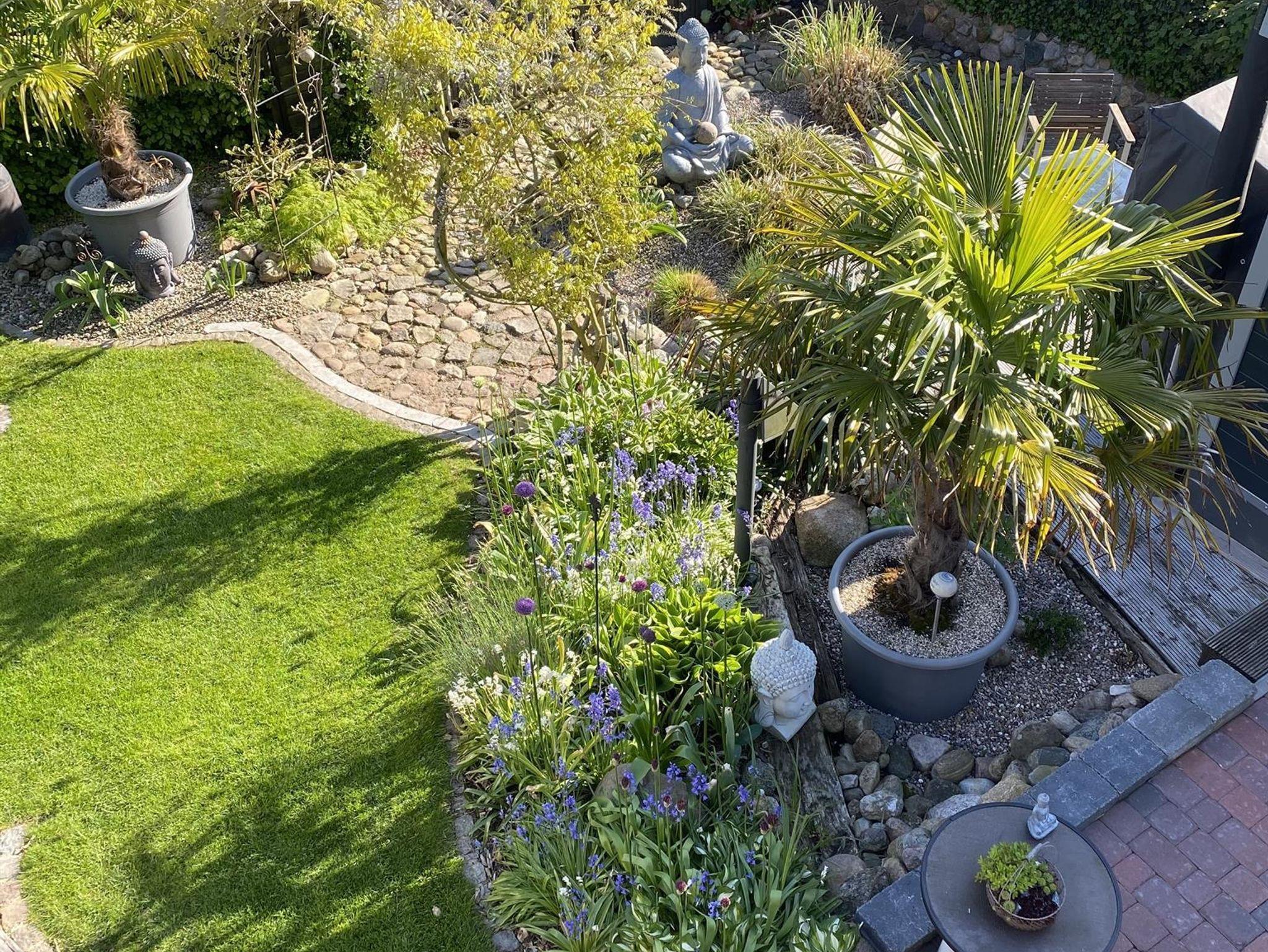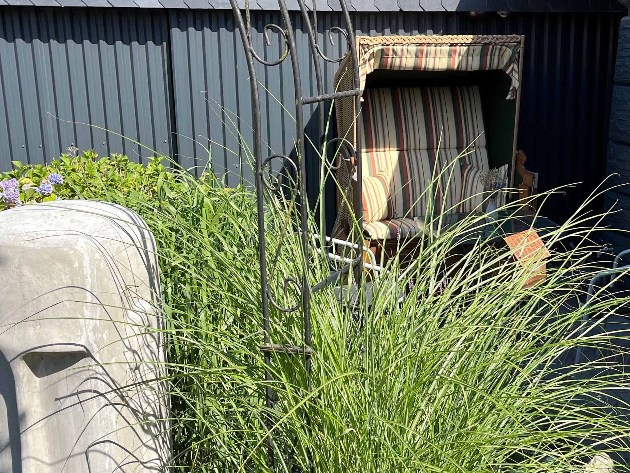 Haus mit Garten, Gästeterasse vorhanden. KFZ Stellplatz vor dem Haus. Ferienwohnungen liegen im 1.Stock. Garten mit Steingärten angelegt. Gästeterasse mit Strandkorb. Grill und Liegemöglichkeiten vorhanden. Seperater Eingang. Haus liegt in einer ruhigen Seitenstraße mit Hanglage.