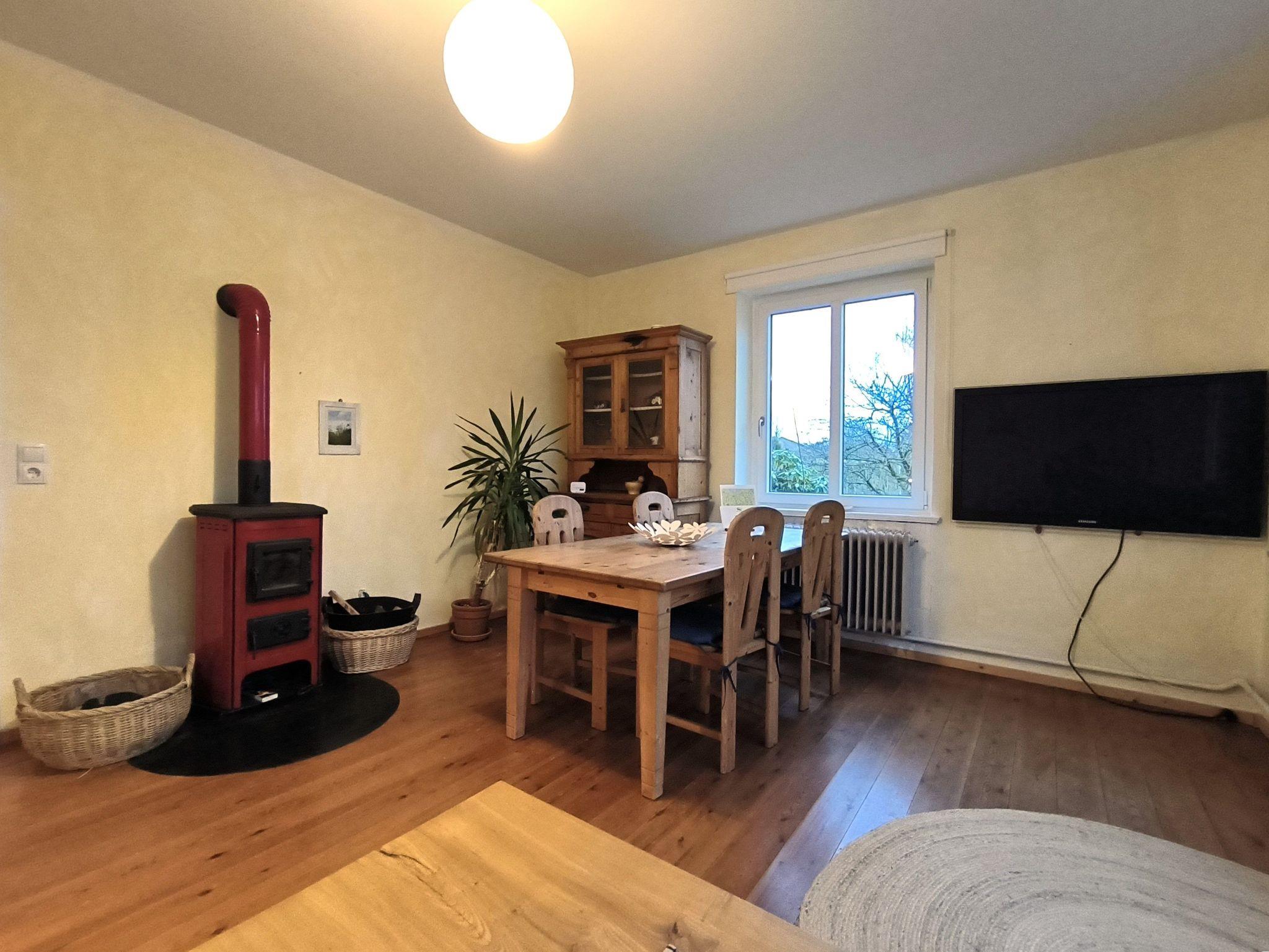 Die Wohnung Gartenblick ist 58qm groß und liegt im Erdgeschoss eines alten Bauernhauses. Sie ist liebevoll und gemütlich eingerichtet und besteht aus einem Schlafzimmer mit Doppelbett, einem Wohnzimmer mit Sitzmöglichkeit und großem TV an der Wand, einem Bad mit Dusche und WC sowie einer Küche mit Herd und Backofen. Zur Wohnung gehört ein wunderschöner Garten mit Grillmöglichkeit, ein Parkplatz und eine Unterstellmöglichkeit für Fahrräder. Die Wohnung ist für zwei Personen eingerichtet, zusätzliche Schlafmöglichkeiten (gegen Gebühr) sind auf Anfrage möglich. Gerne stellen wir ein Kinderreisebett zur Verfügung (gegen Euro 10,00 Aufpreis), ein Hochstuhl ist auch vorhanden.