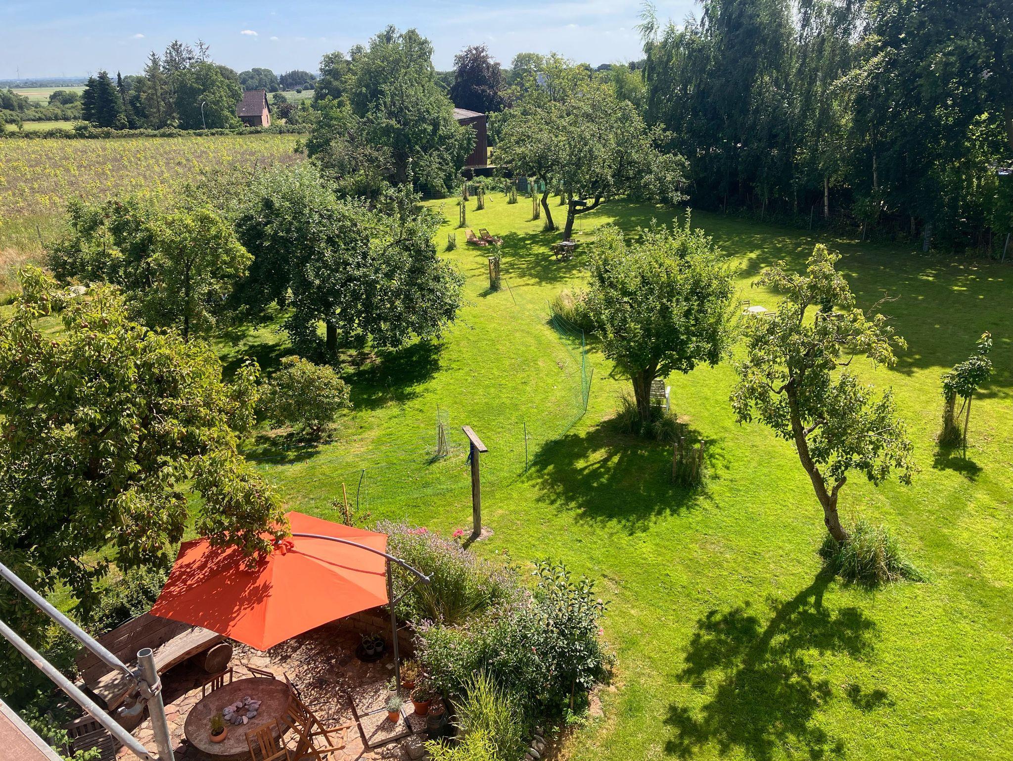 Appelbue: Urlaub im Storchendorf, Ferienwohnung Gartenblick