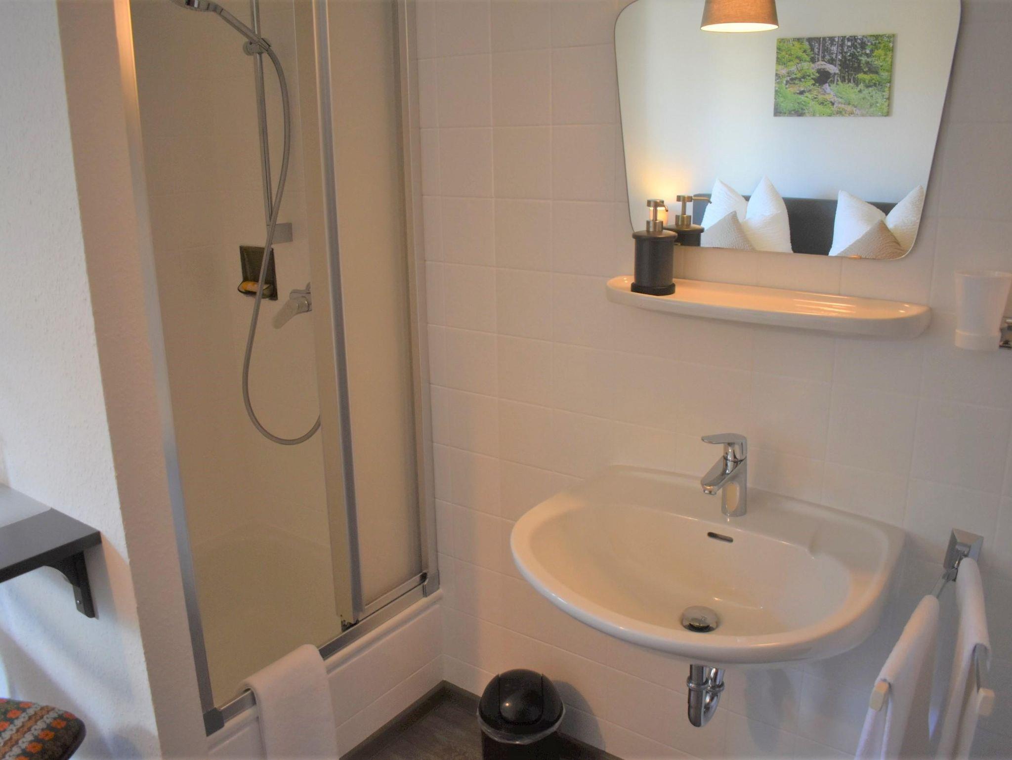 Bei den Standardzimmern ist die Dusche im Zimmer, aber ein separates WC.