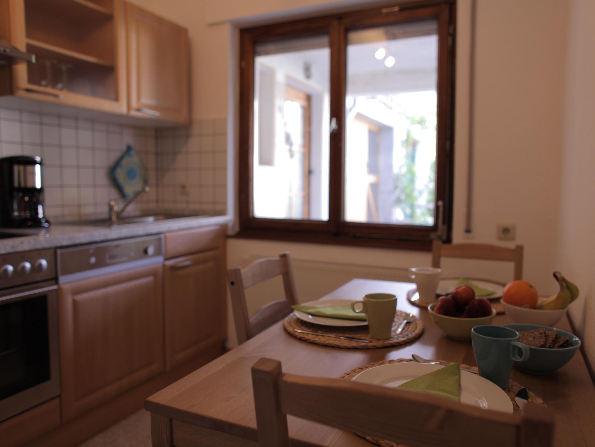 Die Wohnung hat 57 qm (zzgl. 20 qm überdachte Terrasse) mit Schlafplätzen für 2–3 Personen und ist komfortabel ausgestattet. Der direkte Blick in den Garten lädt zur Beobachtung von Pflanzen und Tieren und zur Erholung ein.