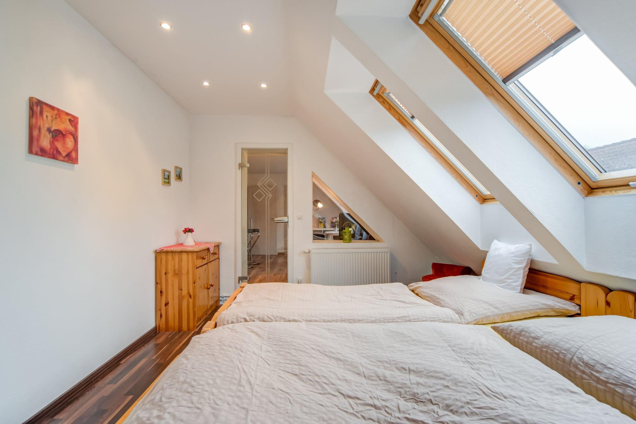 Denne fuldt udstyrede lejlighed i det nordlige Berlin tilbyder en fredelig base for at udforske både den pulserende hovedstad og den naturskønne delstat Brandenburg. Med et opholdsområde i haven og valgfri flad sauna er den ideel til en afslappende ferie. S-Bahn-stationen kun 10 minutter væk gør adgang til byen ubesværet. Omgivet af marker, skove, søer og enge, blander regionen naturlig skønhed med kulturel rigdom. Fra Potsdams paladser til Berlins museer, teatre og gallerier er der noget for enhver smag. Trendy pubber, biografer og sportsaktiviteter tilføjer til blandingen for både familier og solorejsende. Uanset om du er tiltrukket af rolige gåture eller byeventyr, gør denne lejligheds beroligende charme og centrale beliggenhed den til en perfekt port. Husk blot at tjekke ind mellem kl. og kl. at starte dit ophold problemfrit.