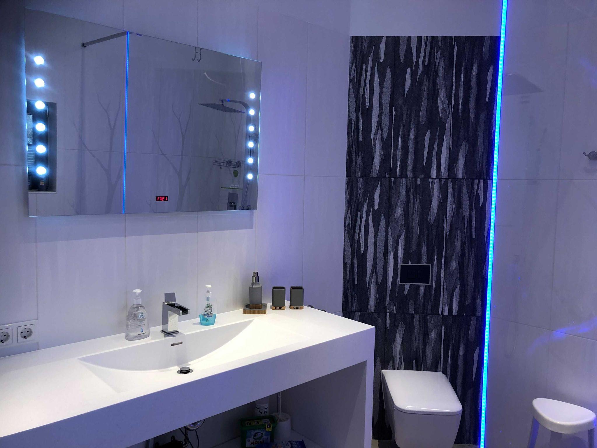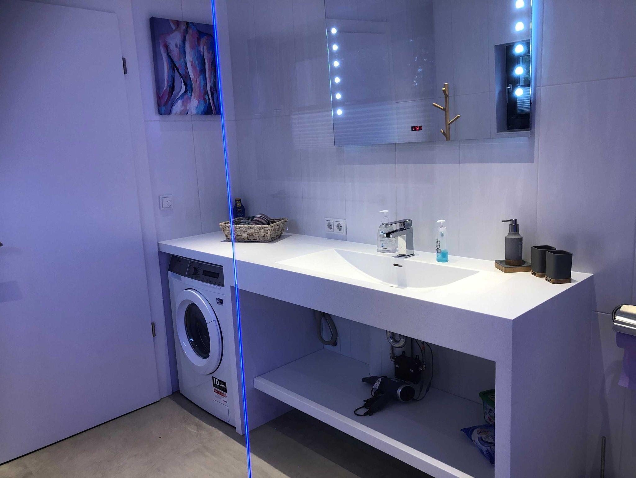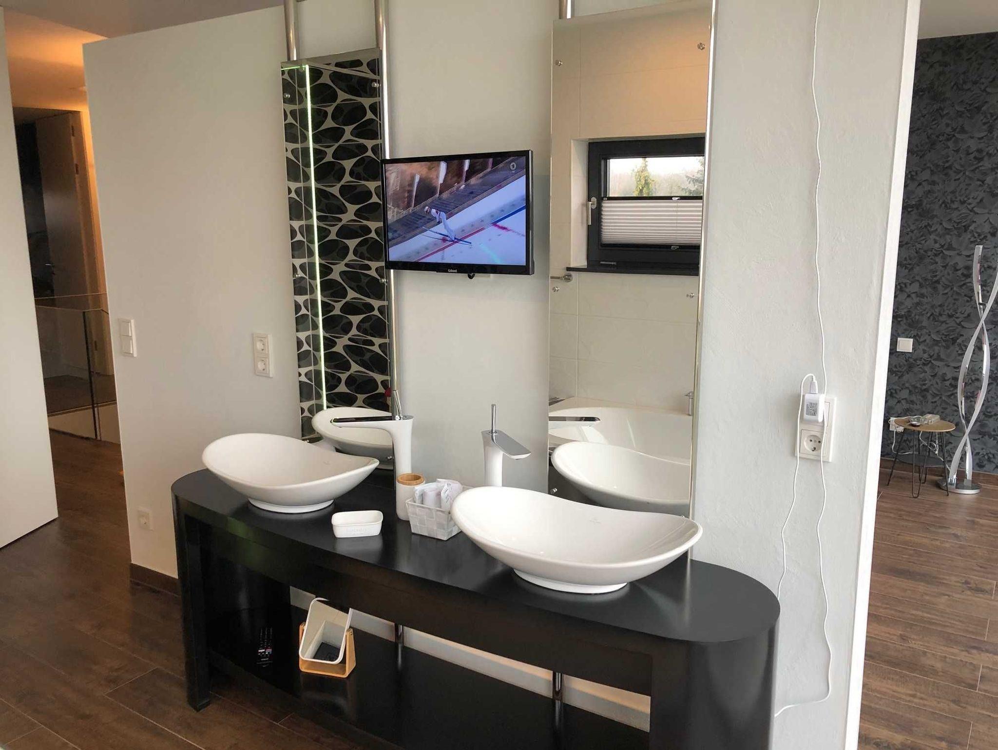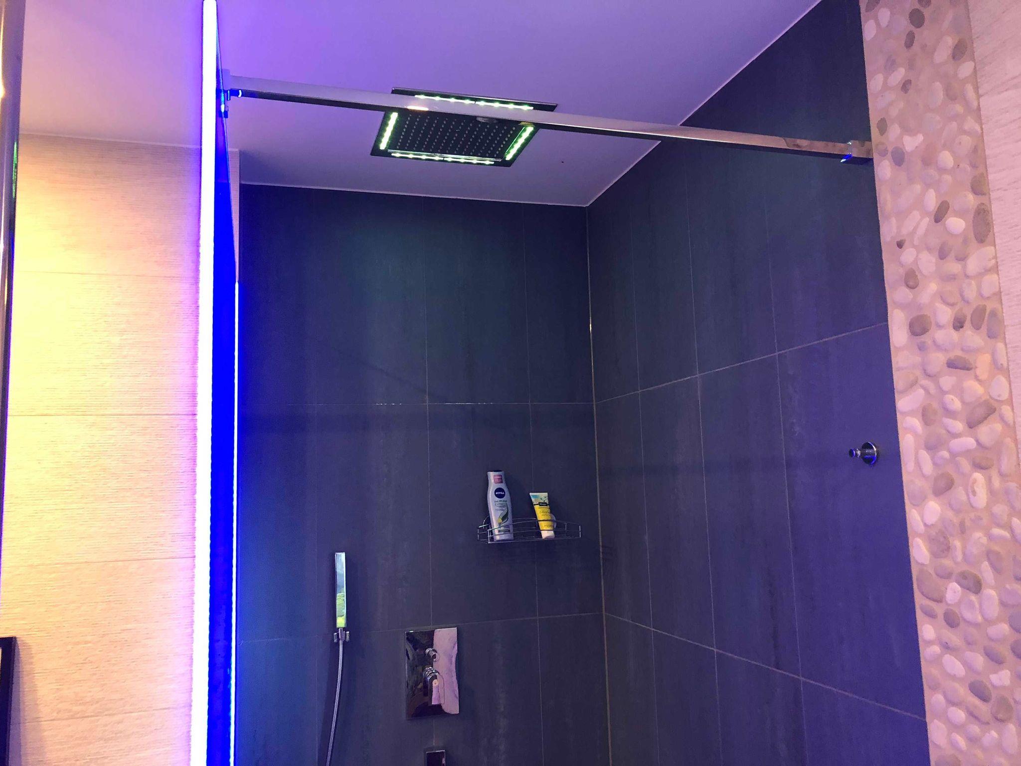 Alle Bäder haben eine Regenwalddusche teilweise mit Beleuchtung/Farbwechsel.