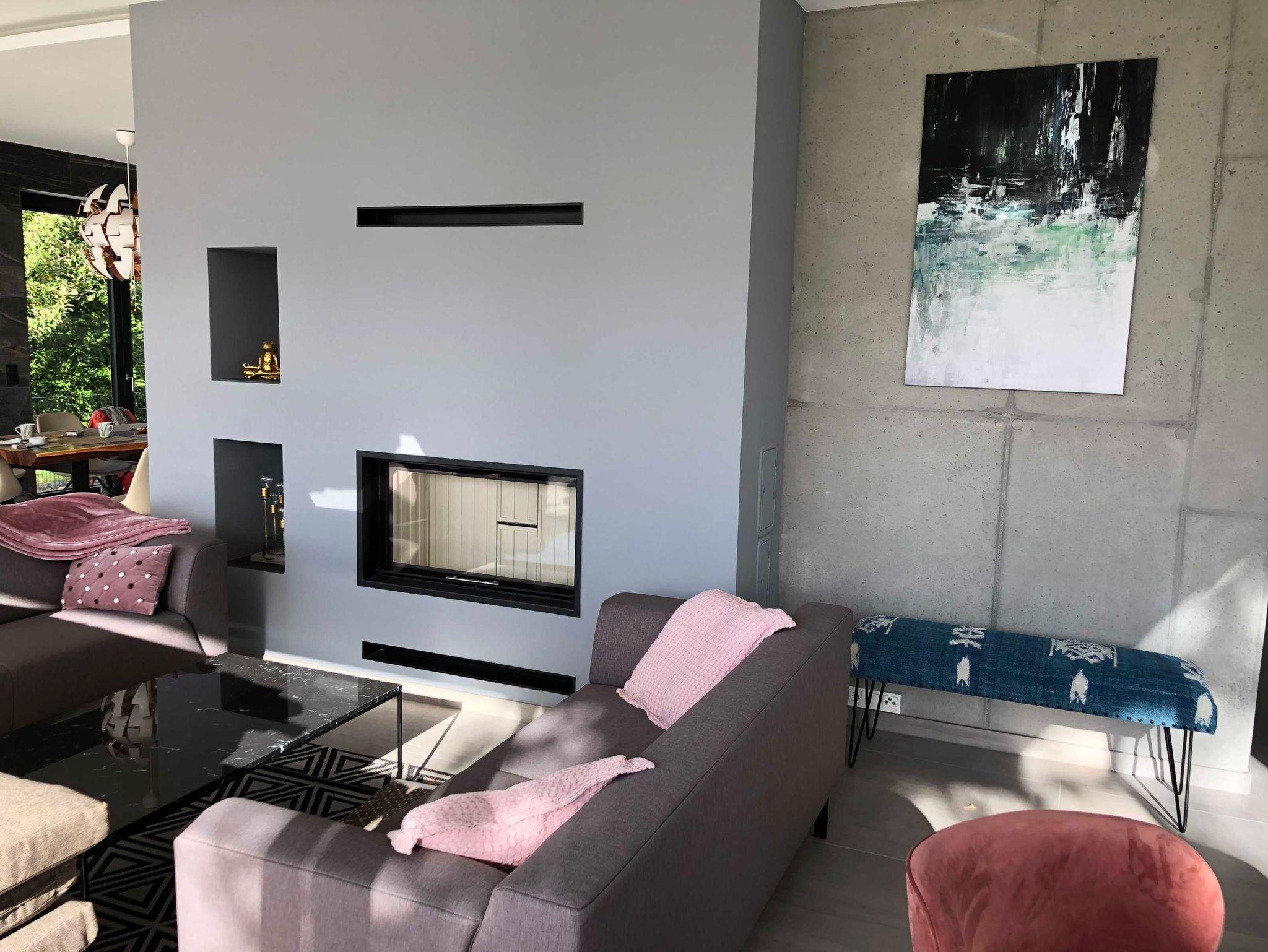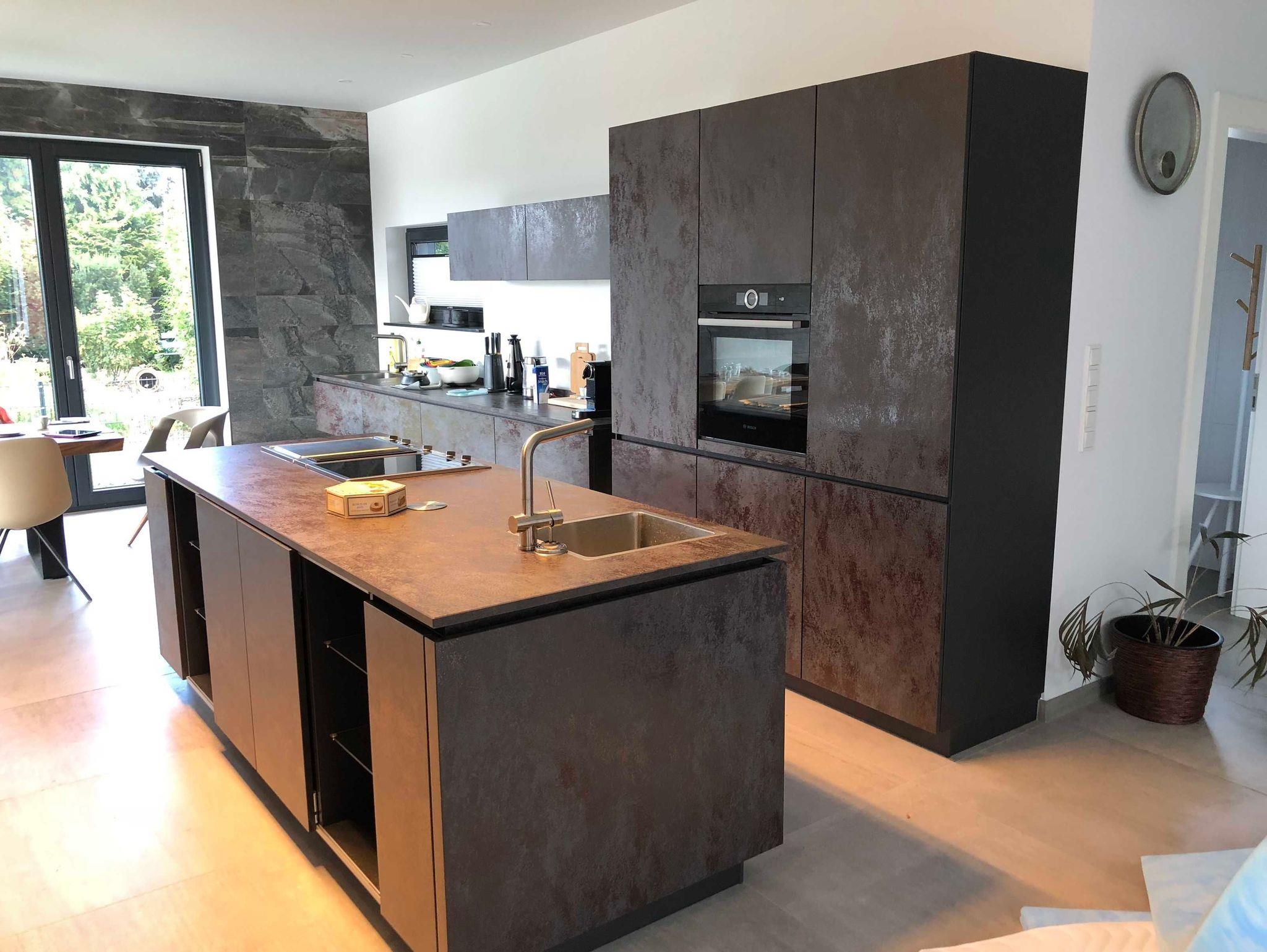 Der ca. 80m² große Wohn-, Ess- und Küchenbereich verfügt über einen Kamin sowie eine hochwertige Keramikküche mit Teppanyaki Grill und Nesspressomachine.